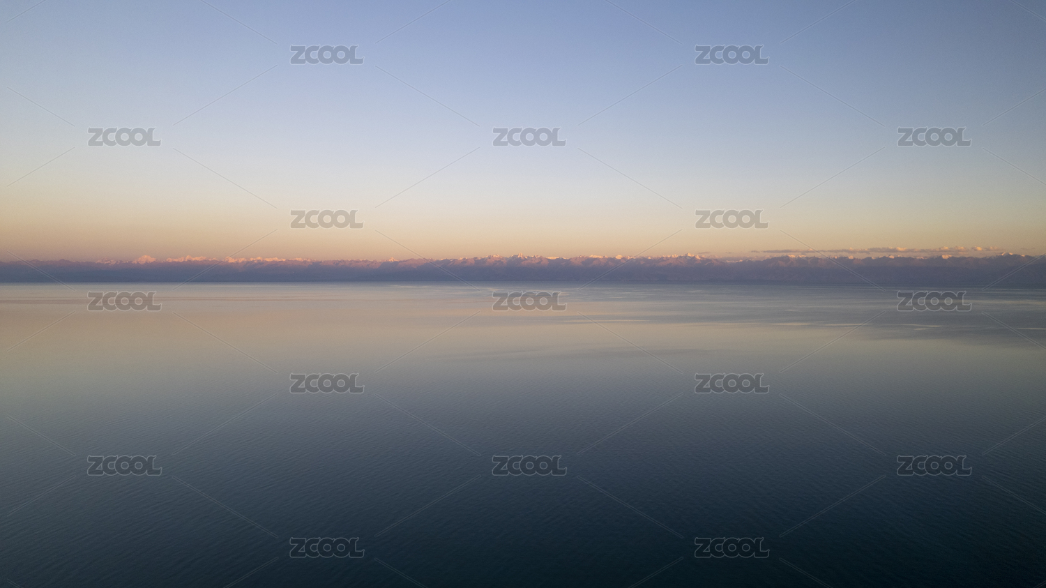 吉尔吉斯斯坦伊塞克湖航拍海天相接朝霞景色