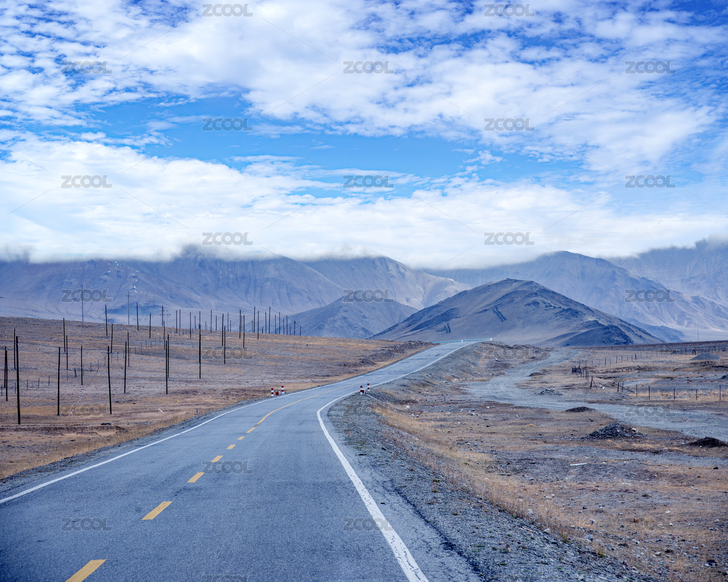 路,雪山,开阔,纵深,青海,海南藏族自治区,道路,山脉,云,蓝色