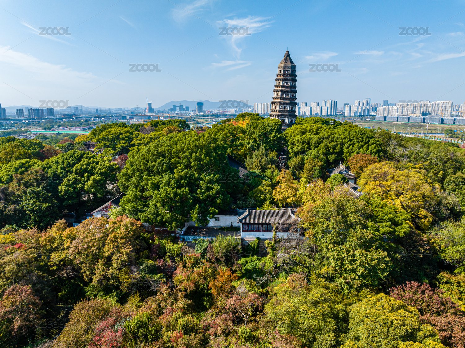 航拍中国江苏苏州虎丘山风景名胜区云岩寺塔虎丘塔