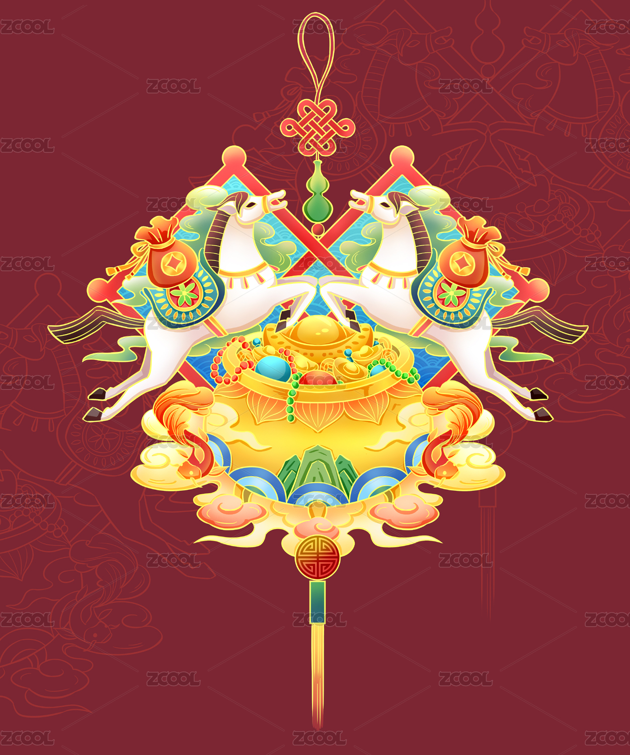 招财进宝传统图案生肖牛的插画