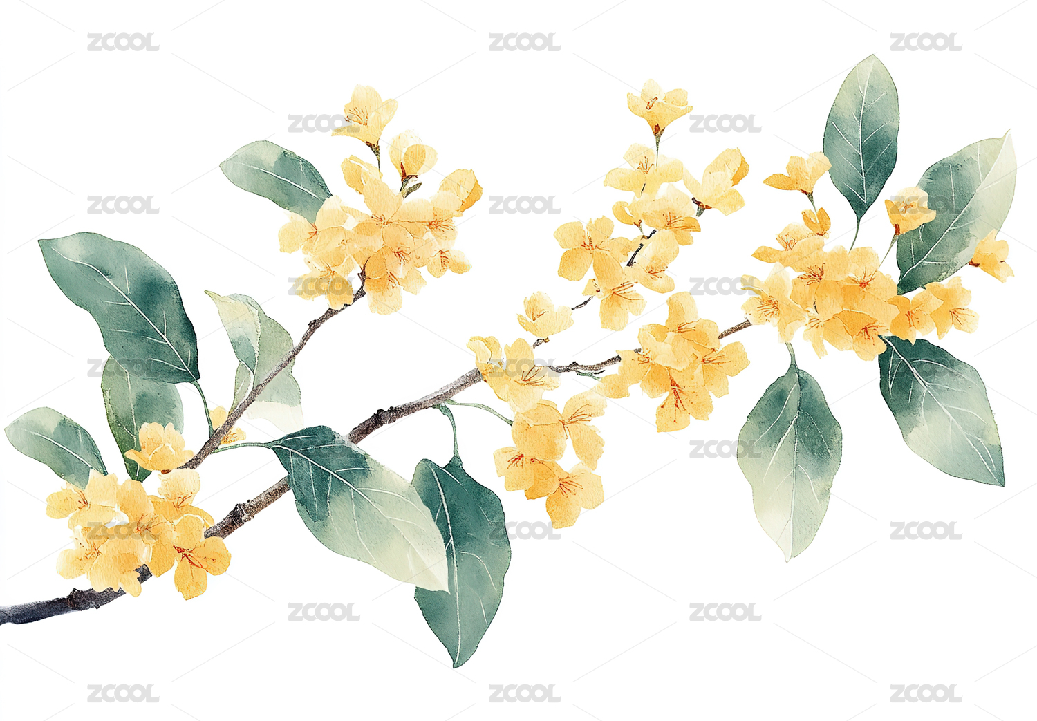 卡通手绘桂花花枝金桂花