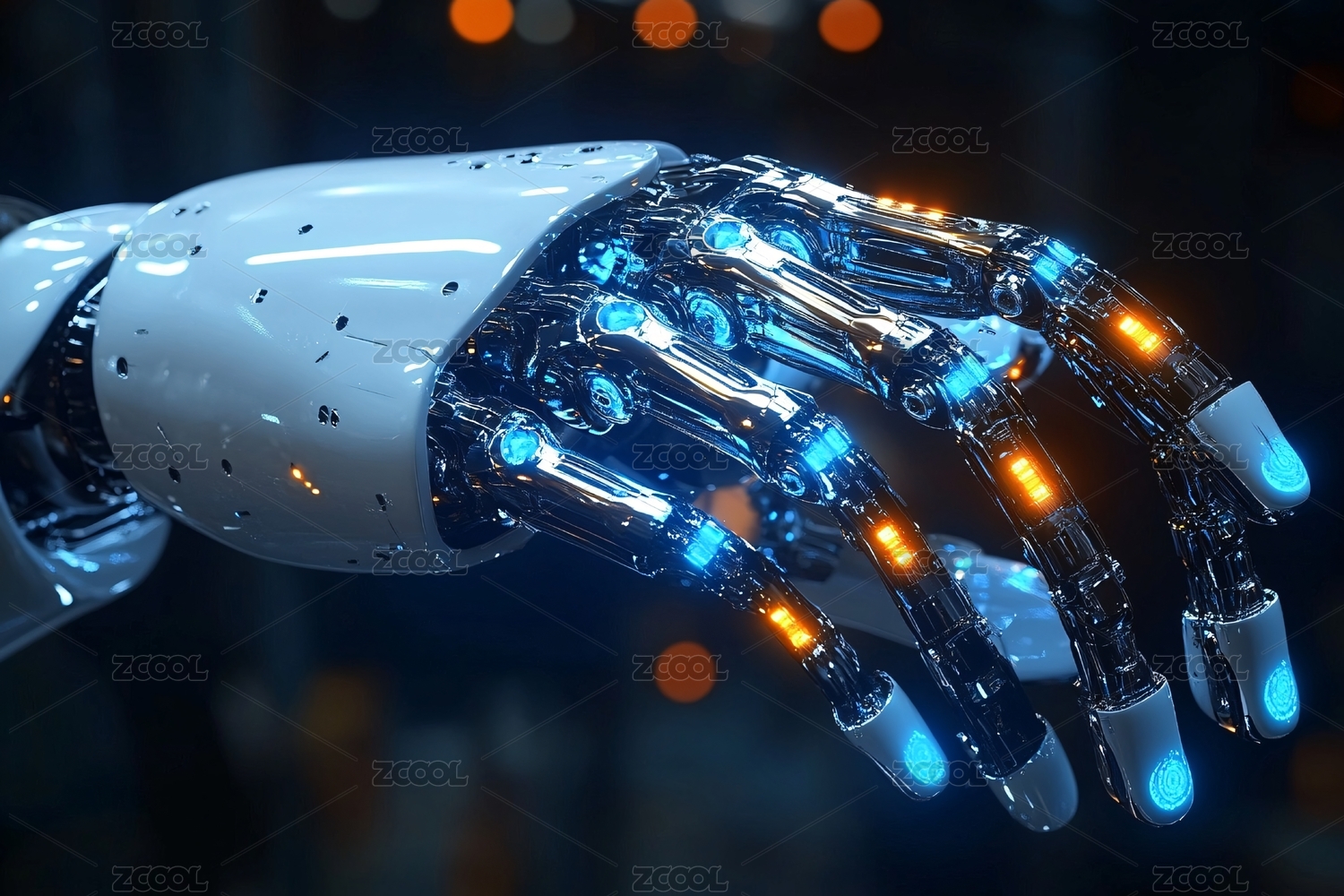 3d未来科幻赛博朋克机器人手臂手指特写