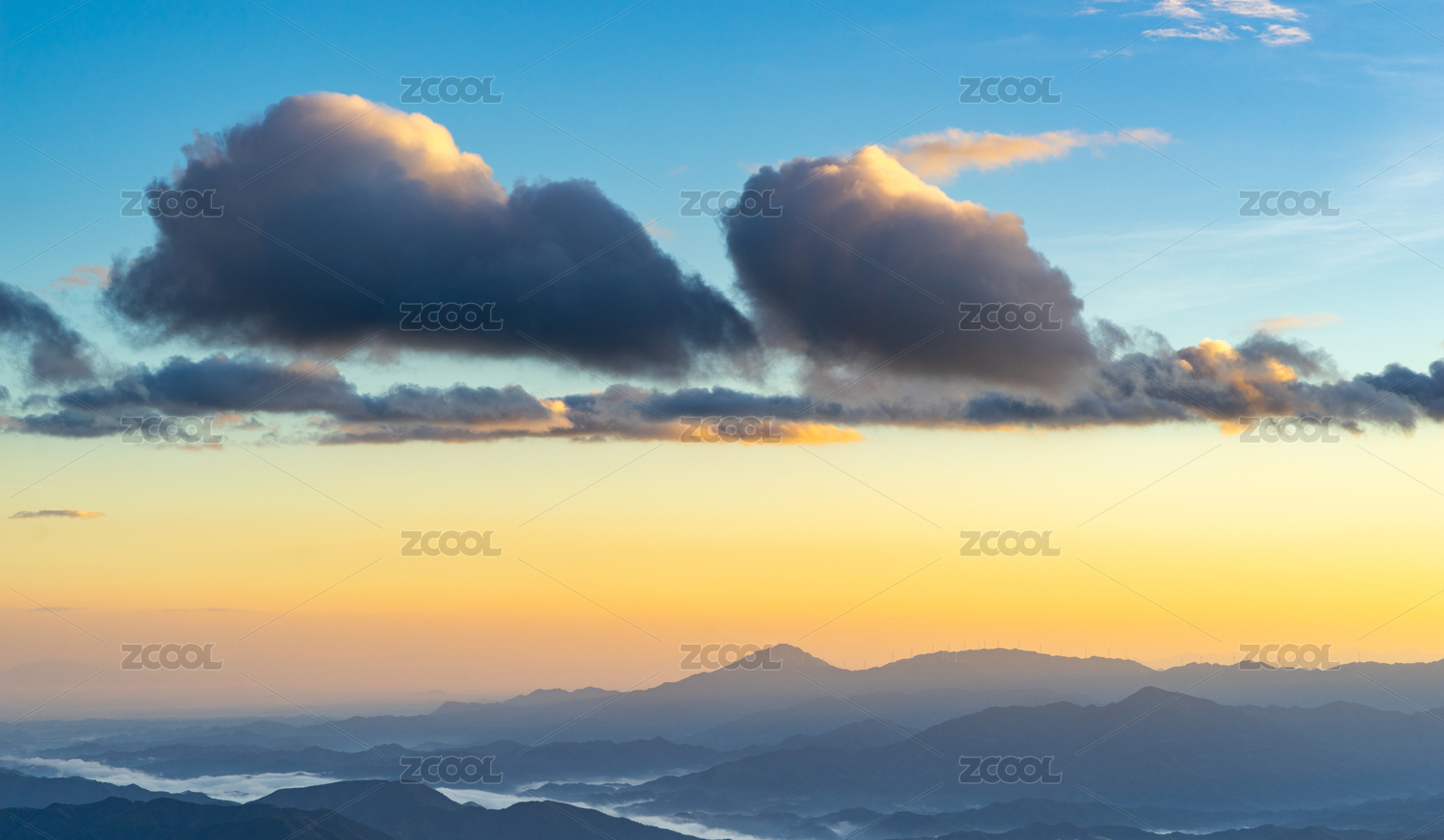 黄昏时分的山峰和云海,中国四川省峨眉山