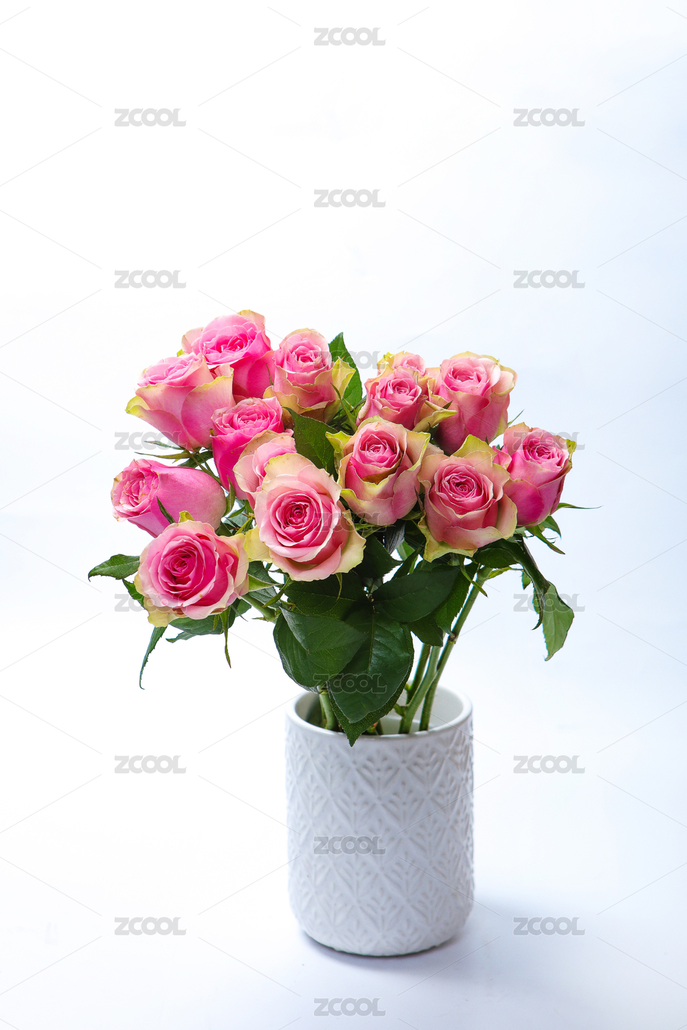 花瓶里美丽鲜艳的粉红雪山玫瑰花