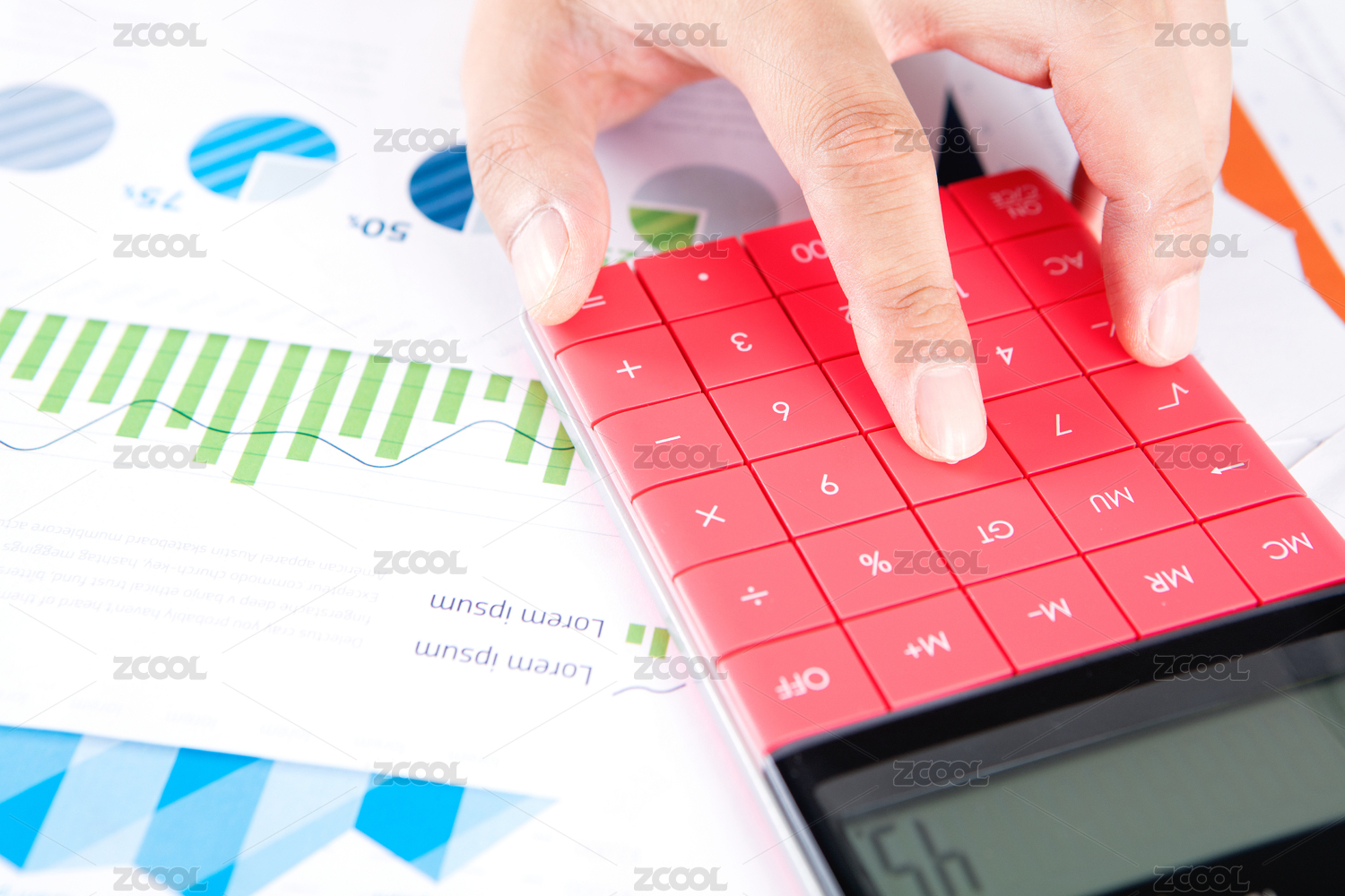 商业图表上的计算器和笔