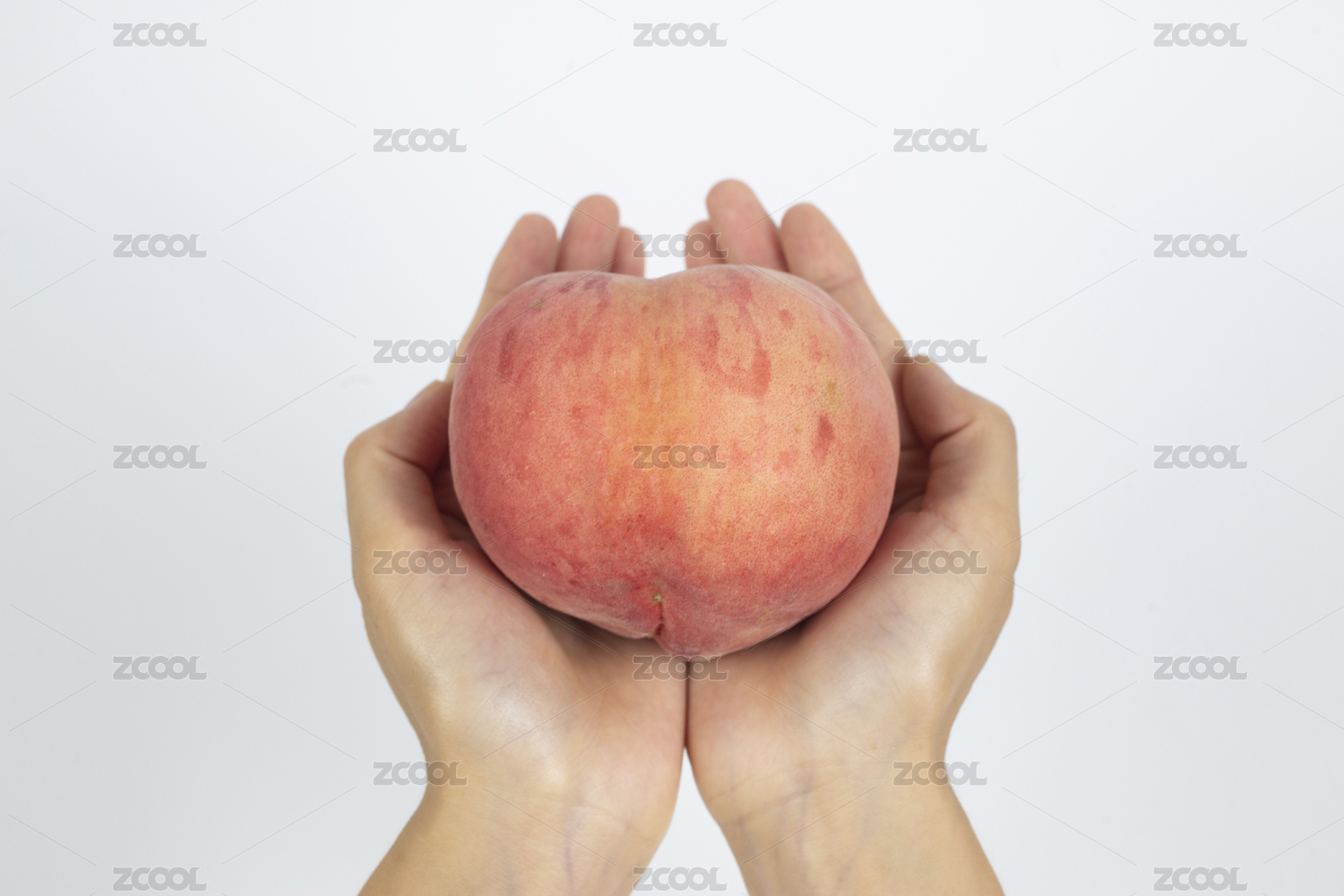 手上拿着一个完整的水蜜桃