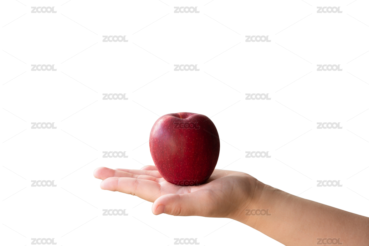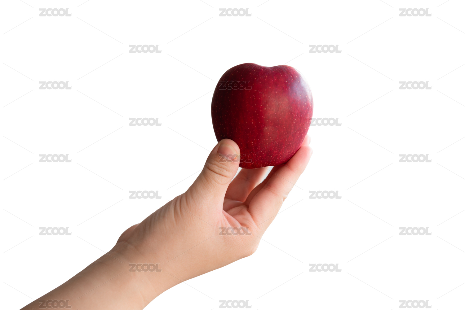 白色背景上手里拿着一只红色的苹果