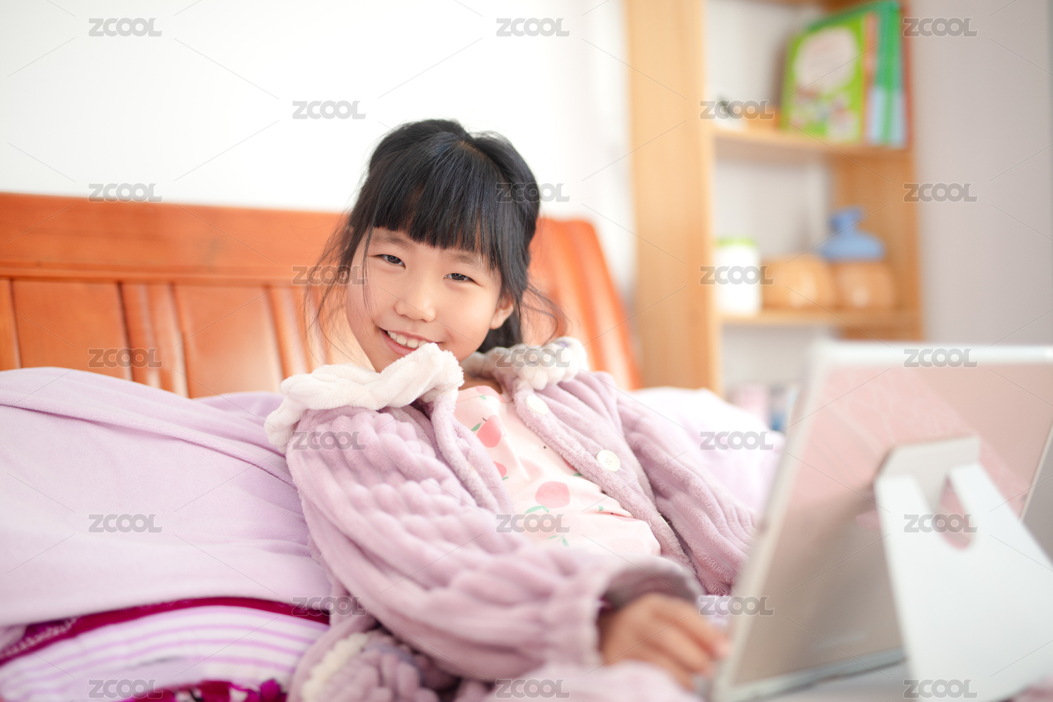娱乐,生活,休闲,看电影,床上,卧室,孩子,小孩,女孩,儿童