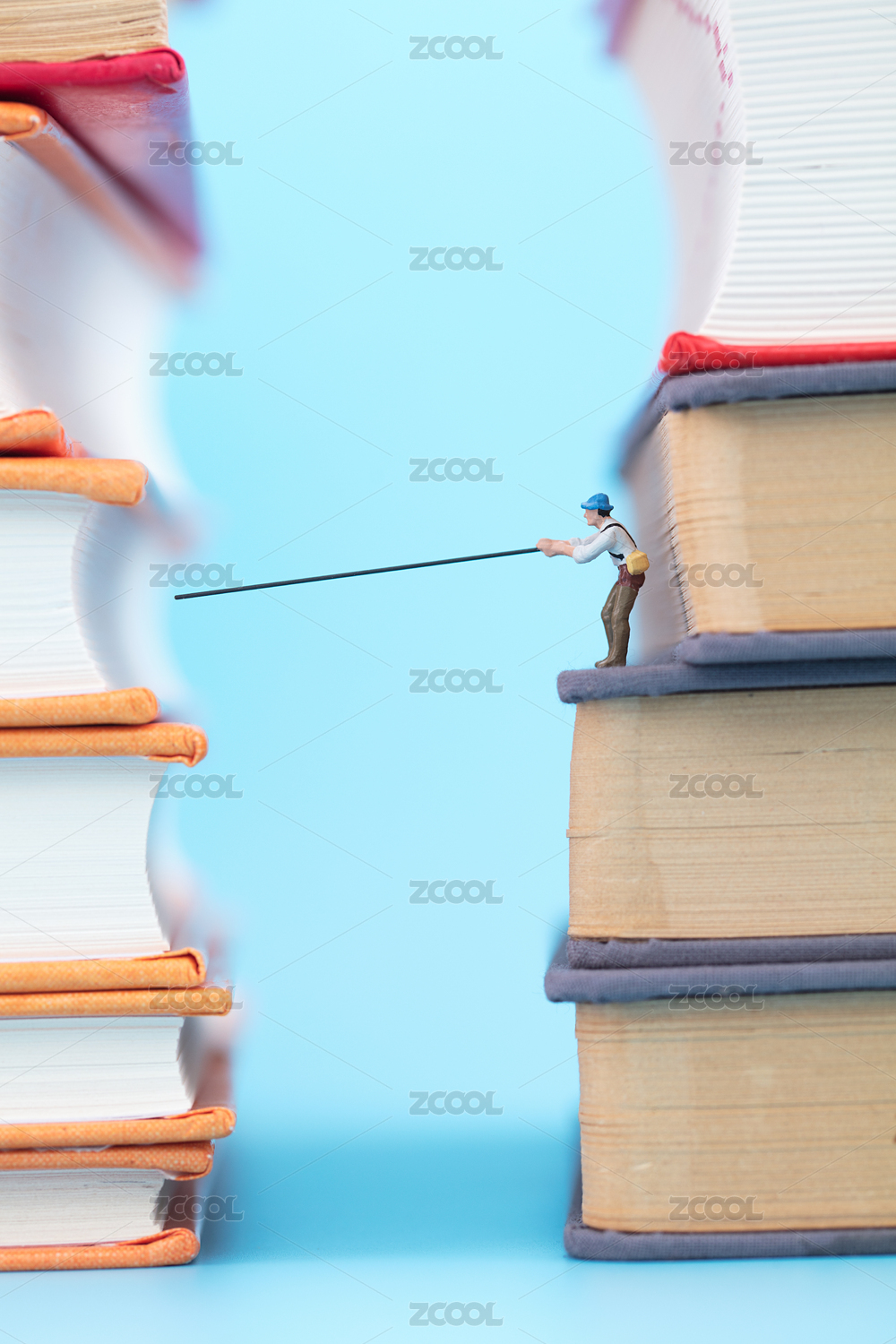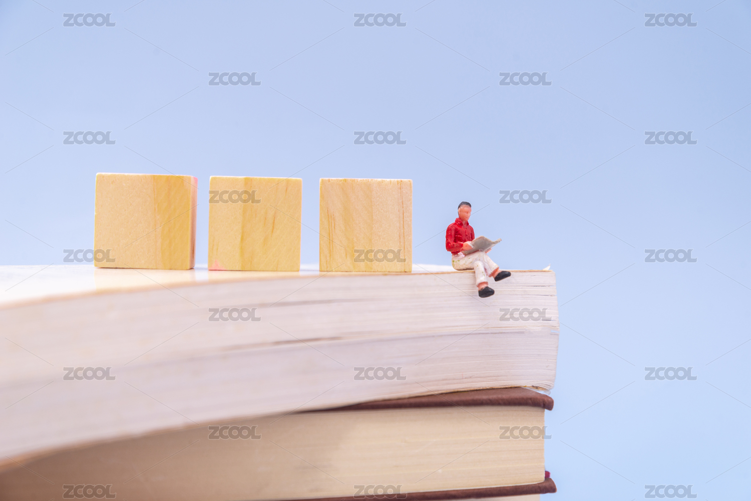 组成阶梯状的书本和上面打闹的儿童人偶模型