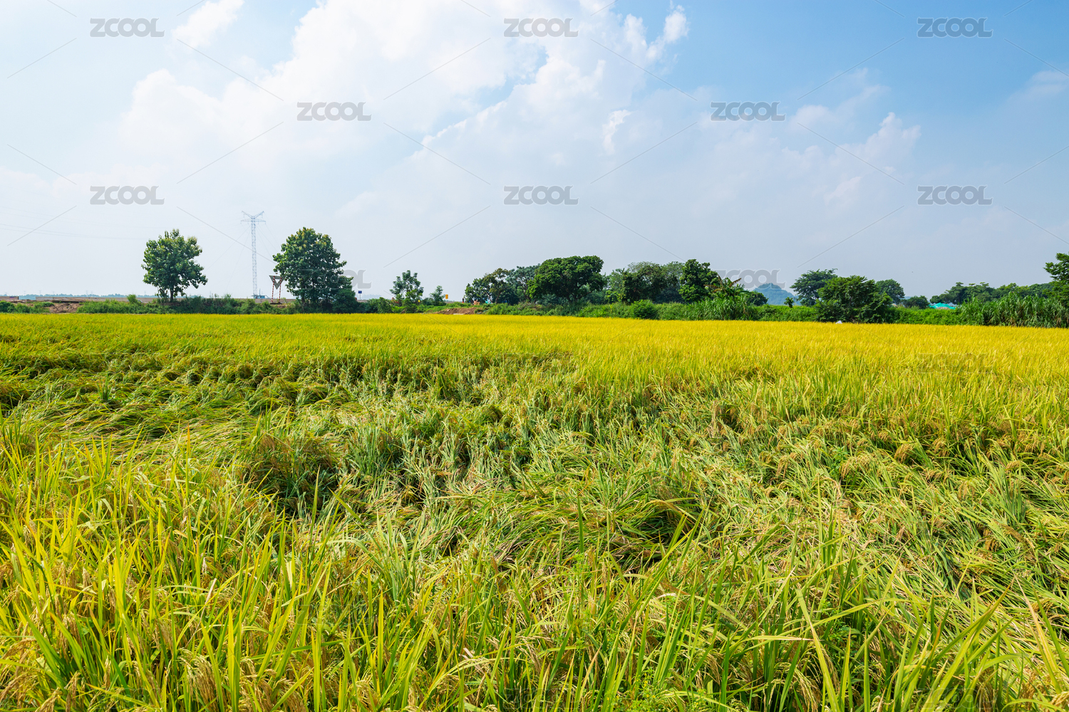 乡村绿色的稻田