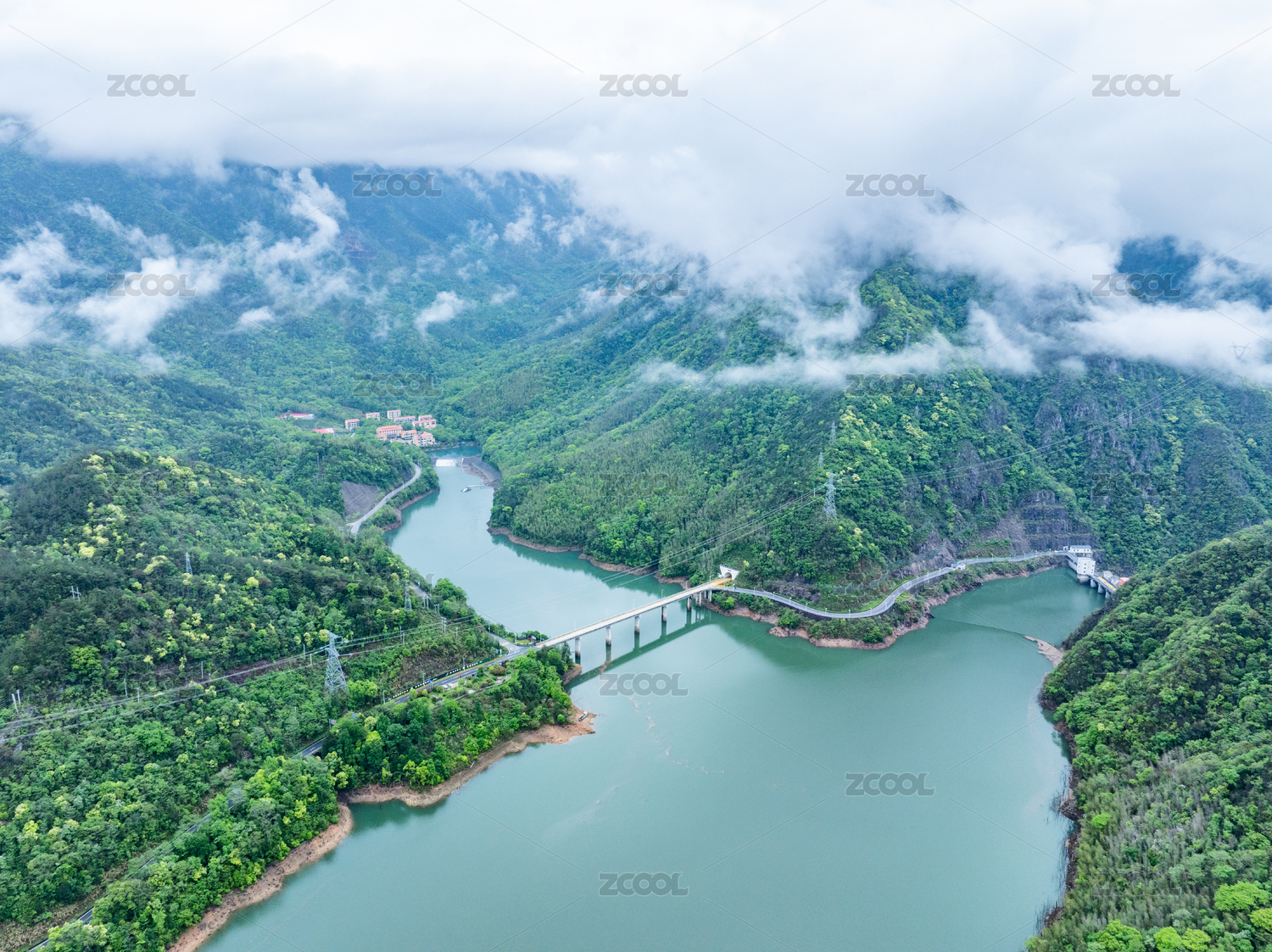 中国广西蒙山县茶山湖风景区云雾缭绕