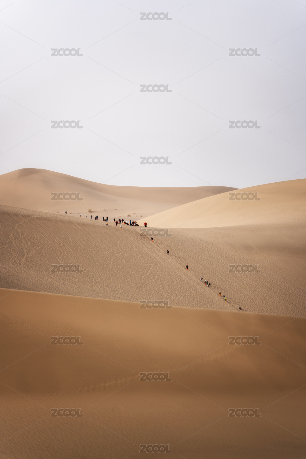 白天中国内蒙古沙漠里的风沙和骆驼队