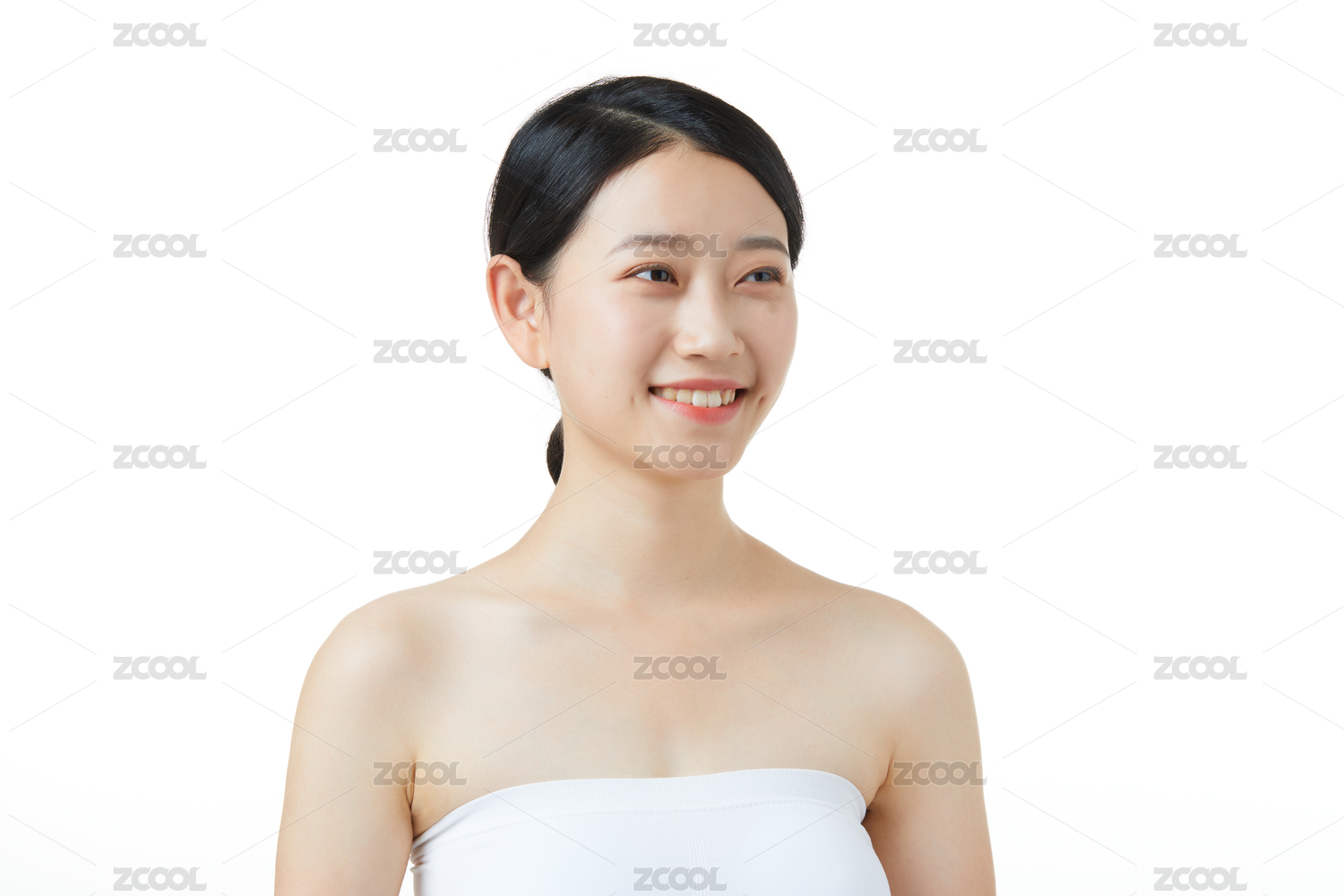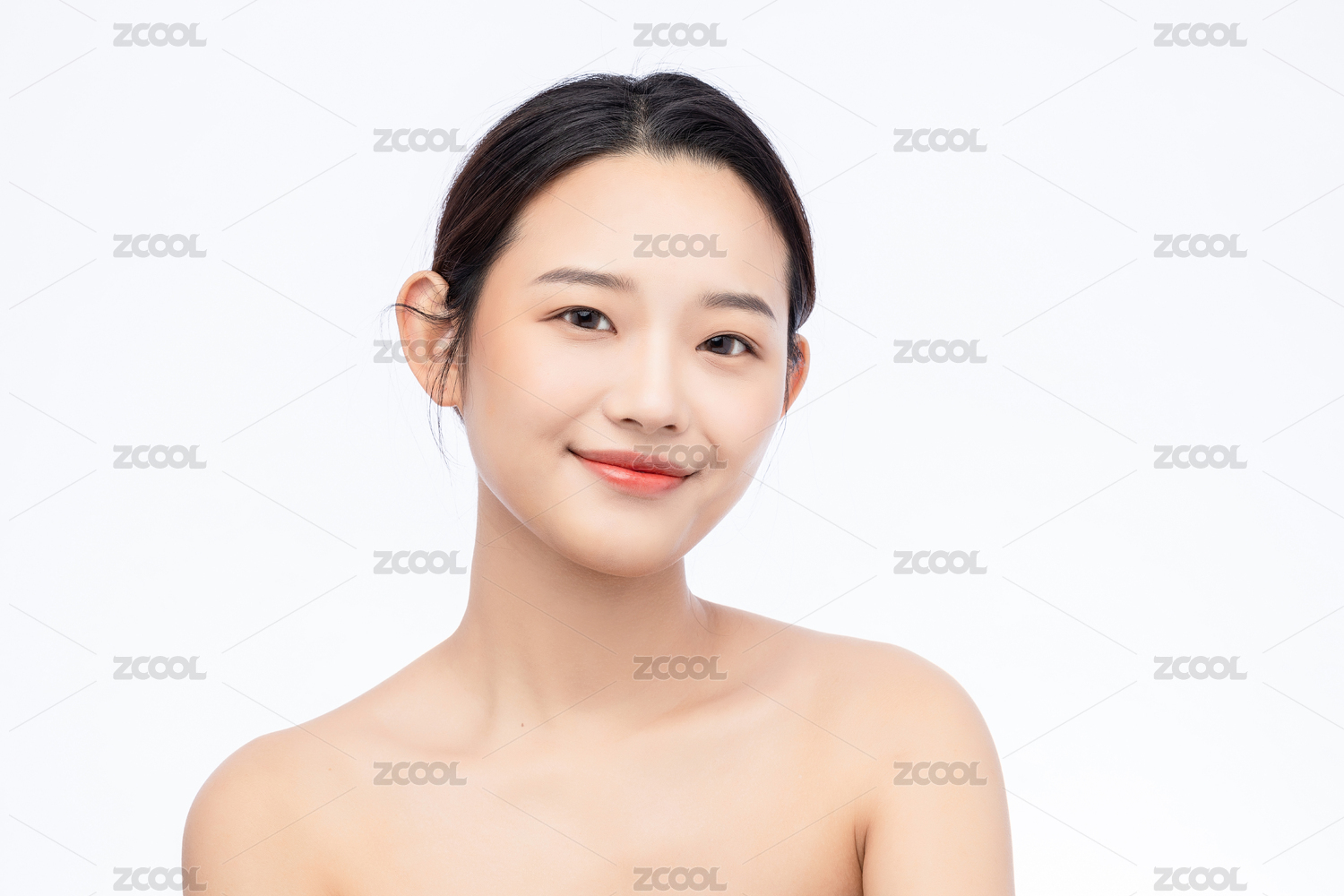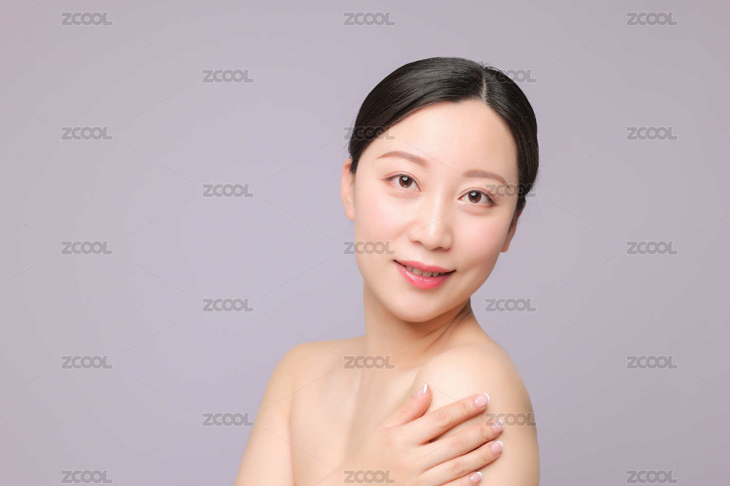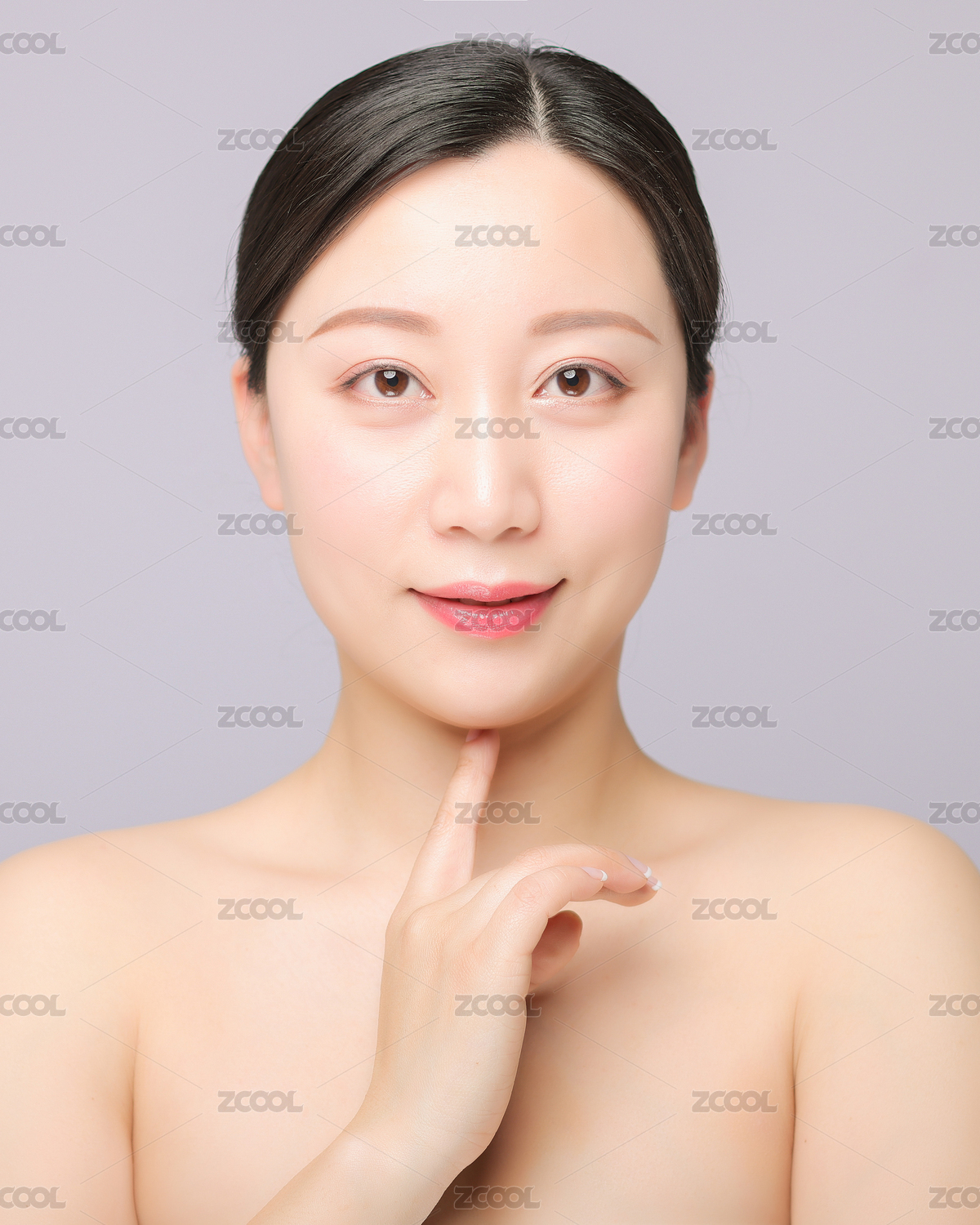 灰色背景里的亚洲美女面部特写,化妆护肤整容