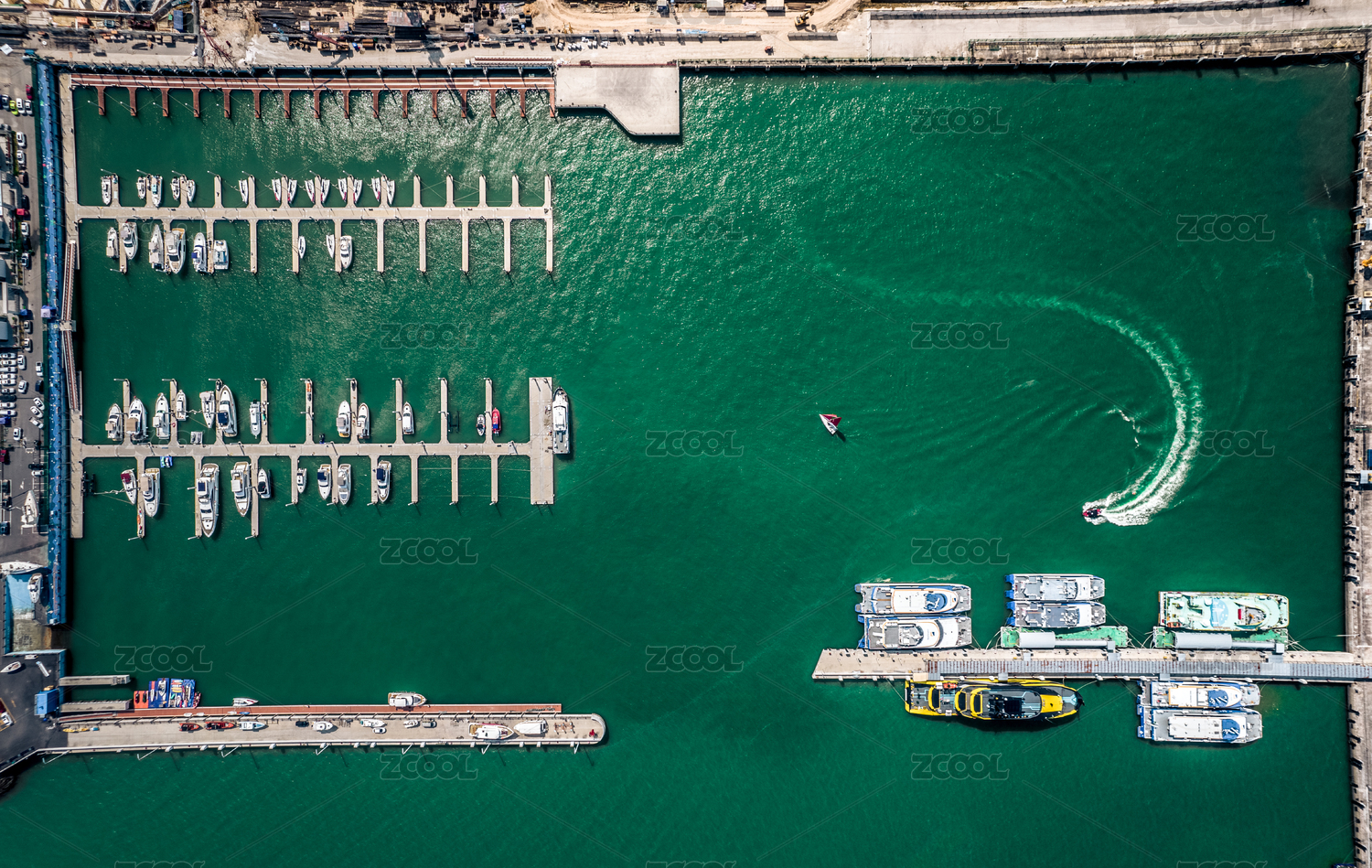 山东烟台芝罘岛芝罘湾码头停泊的渔船