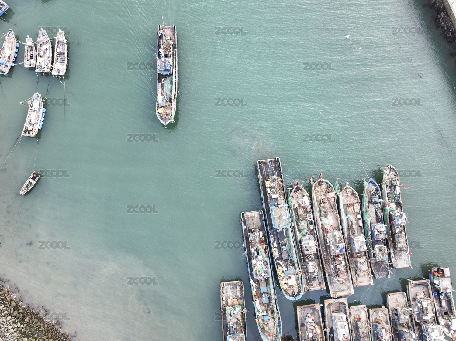 山东烟台芝罘岛芝罘湾停泊的渔船