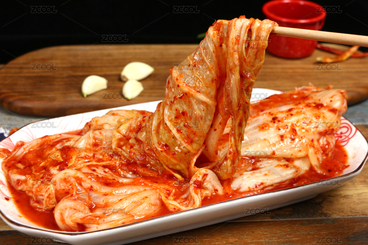木纹背景上的韩式泡菜