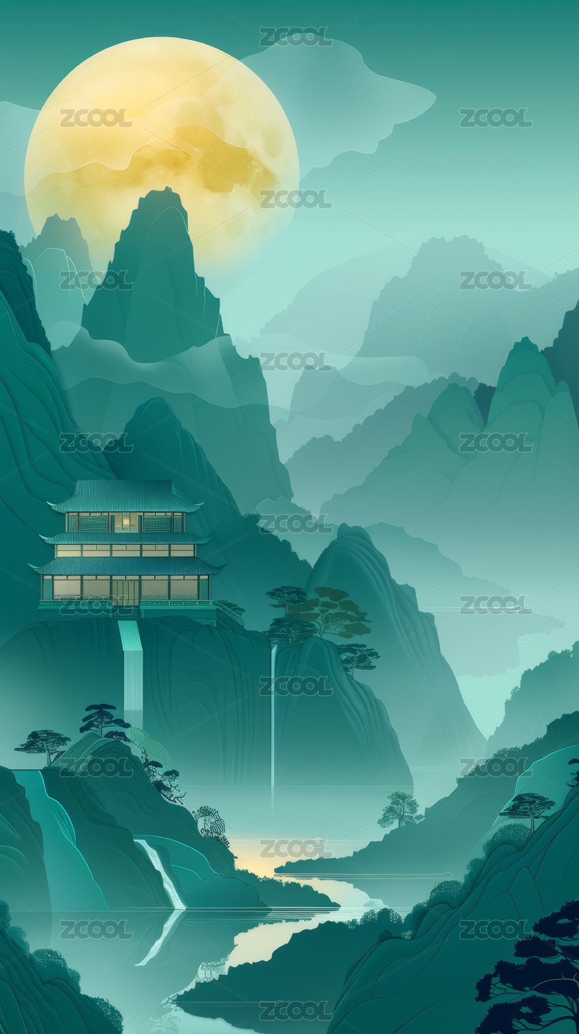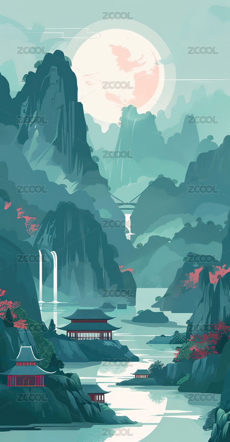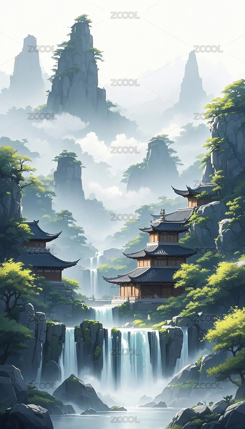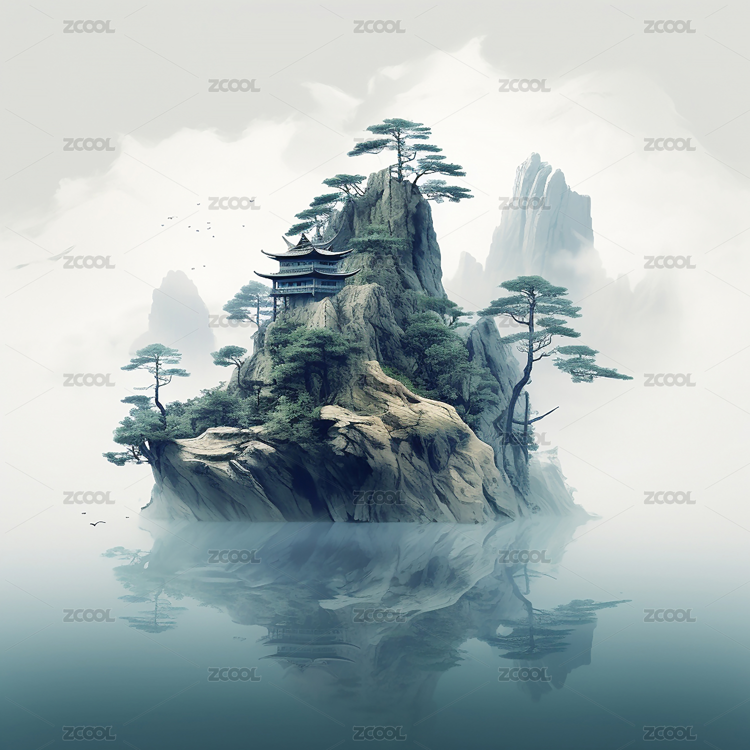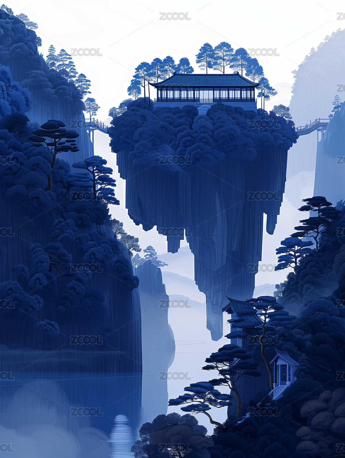 奇幻神话清新漂浮在空中的仙山3D立体插画