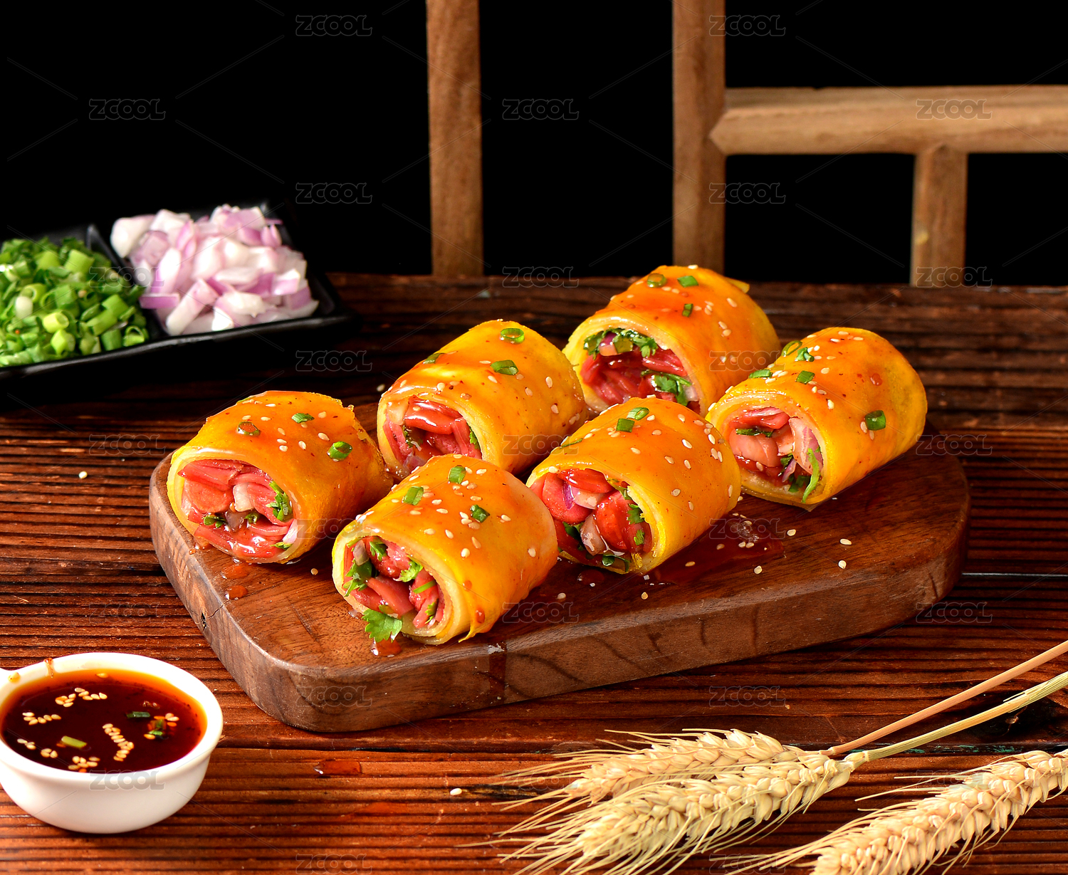 小吃,美食,烤冷面,东北烤冷面,火腿,培根,洋葱,番茄酱,甜辣酱