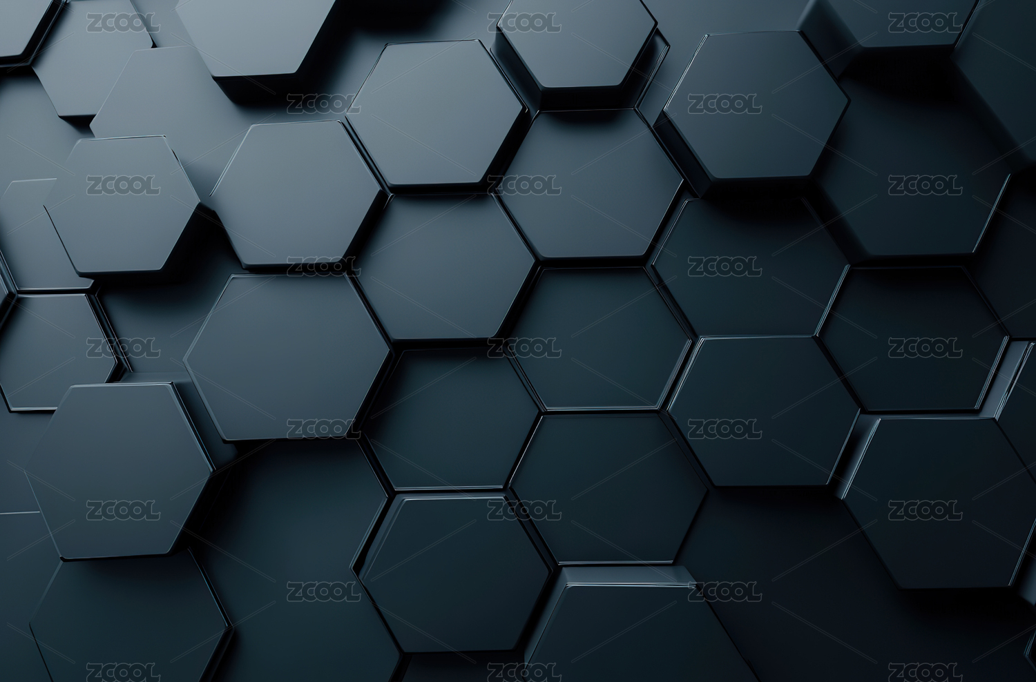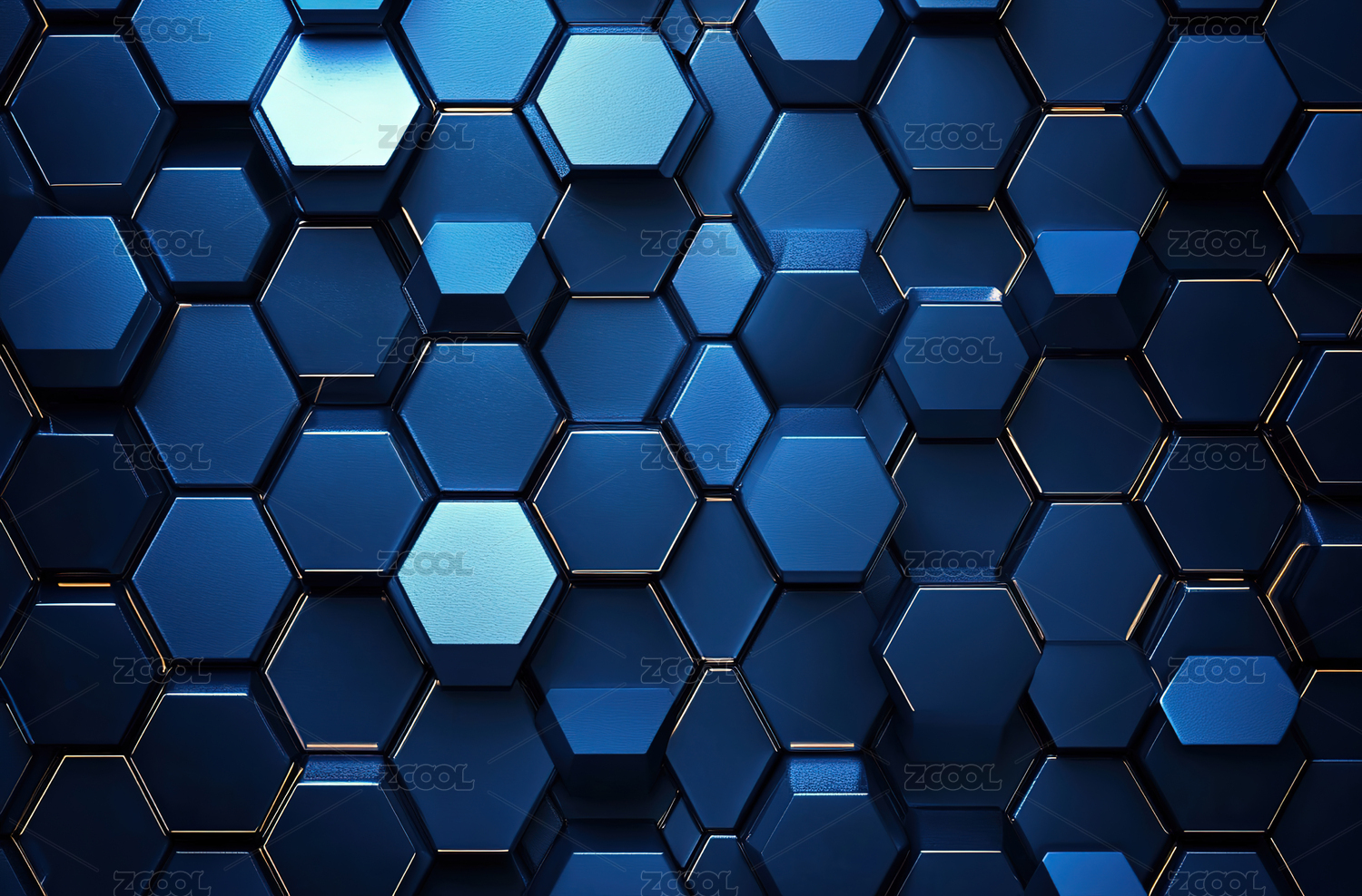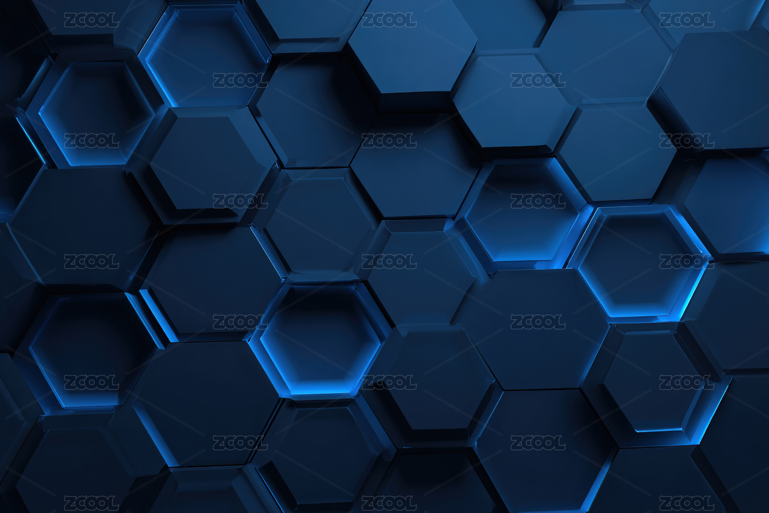 数码蓝色立体蜂窝结构六角图形海报网页背景