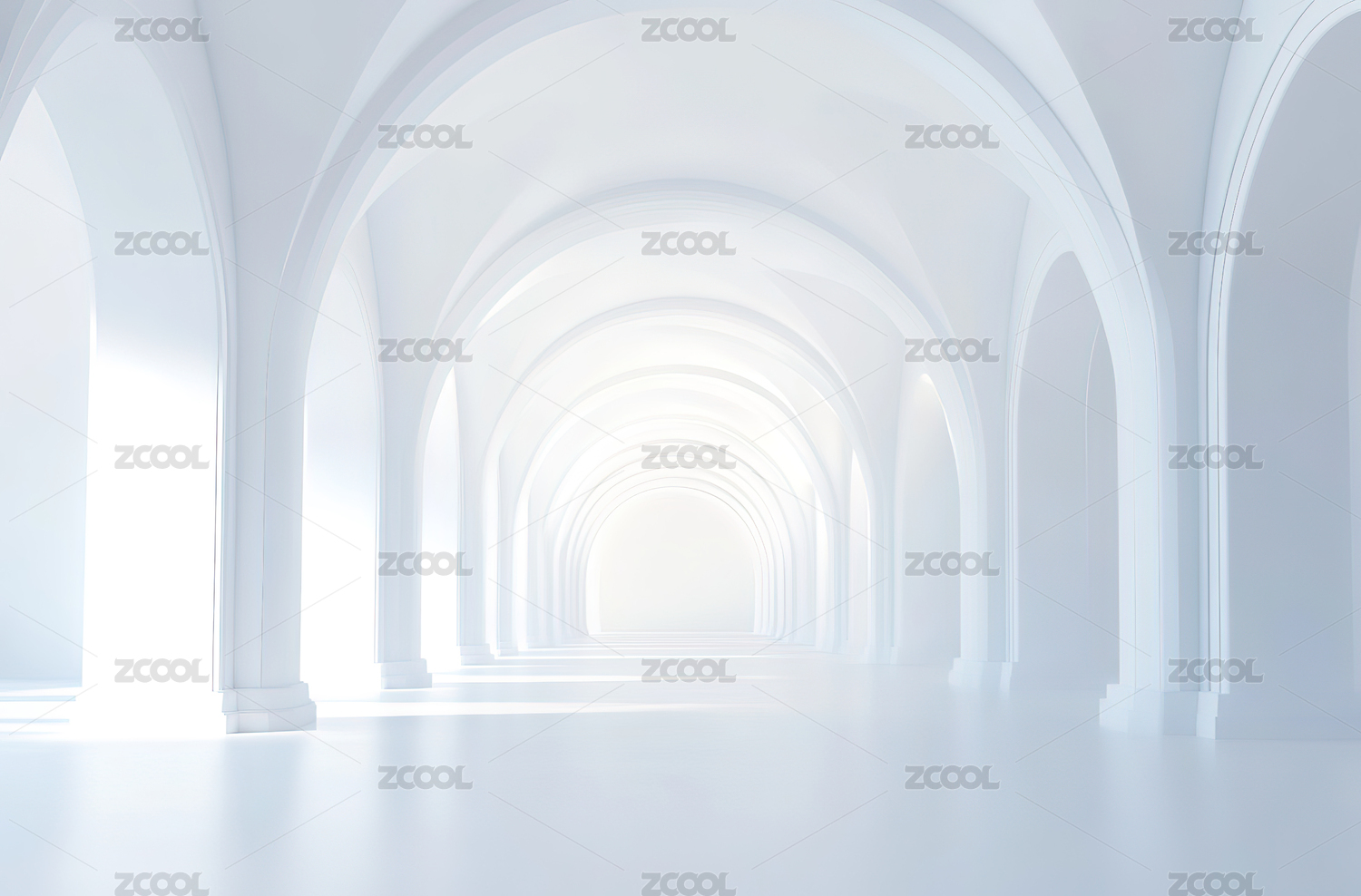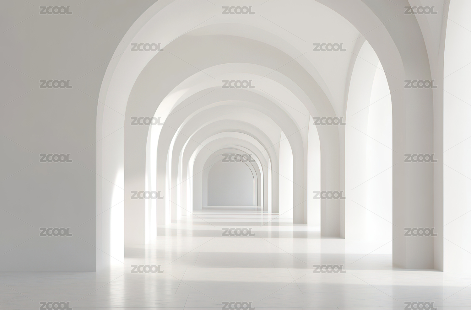 白色拱廊光影走廊