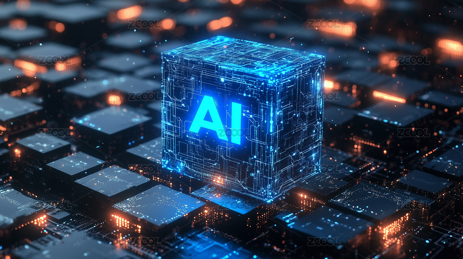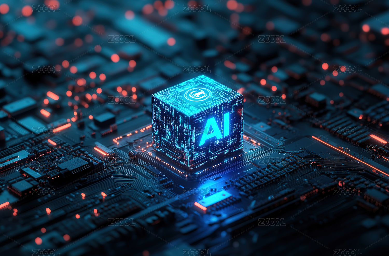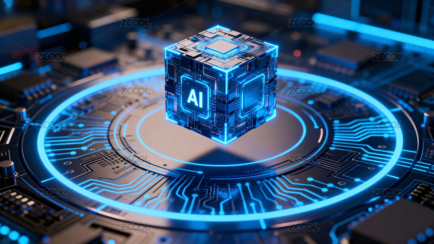 AI技术核心电路板概念图