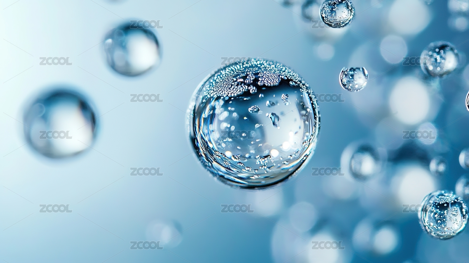 水背景下液体气泡内的分子化妆品精华插图