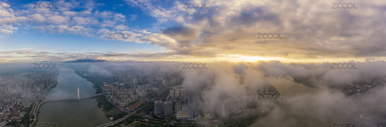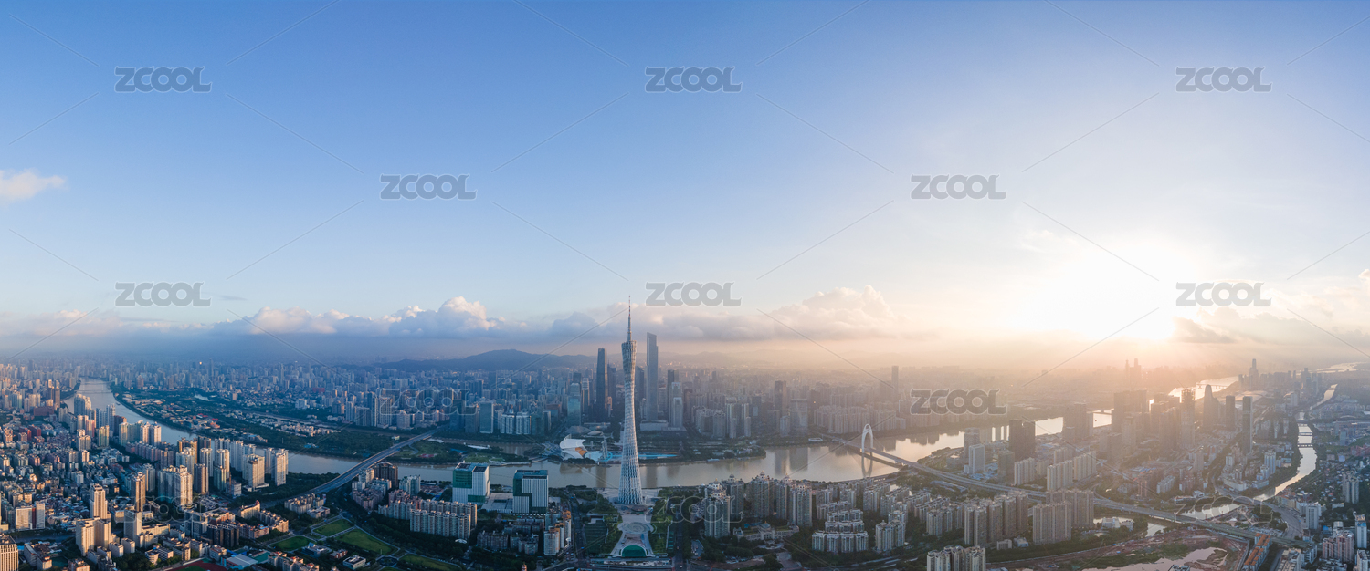 广州城市天际线日出风光航拍全景