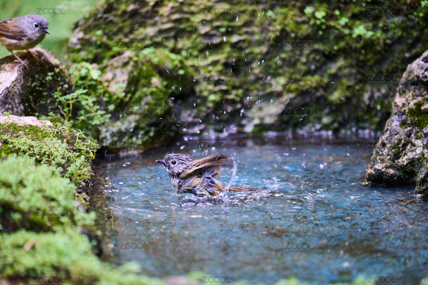 栖息在水域旁岩石上的麻雀