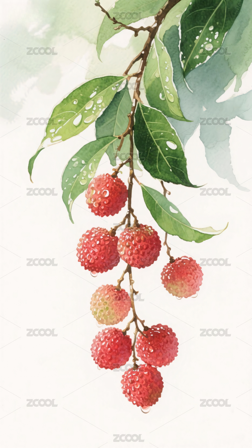 荔枝花枝盛开 鲜艳欲滴的水彩