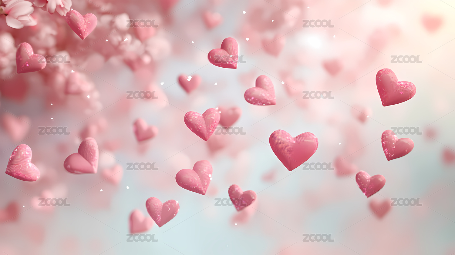 粉红爱心飘浮背景