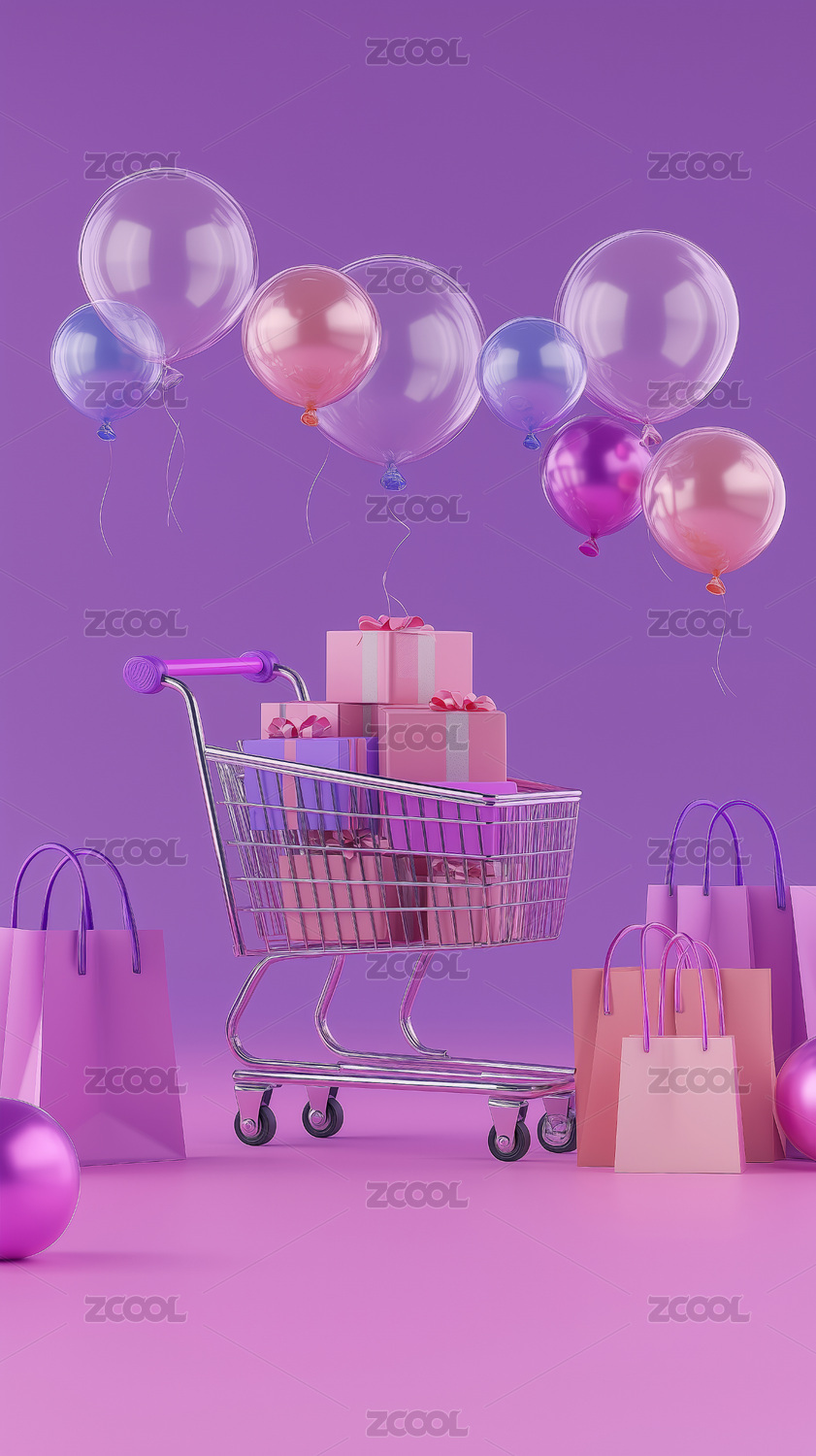 背景, 壁纸,三维, 立体, 现代, 极简, 简约, 插画, 购物车, 礼物