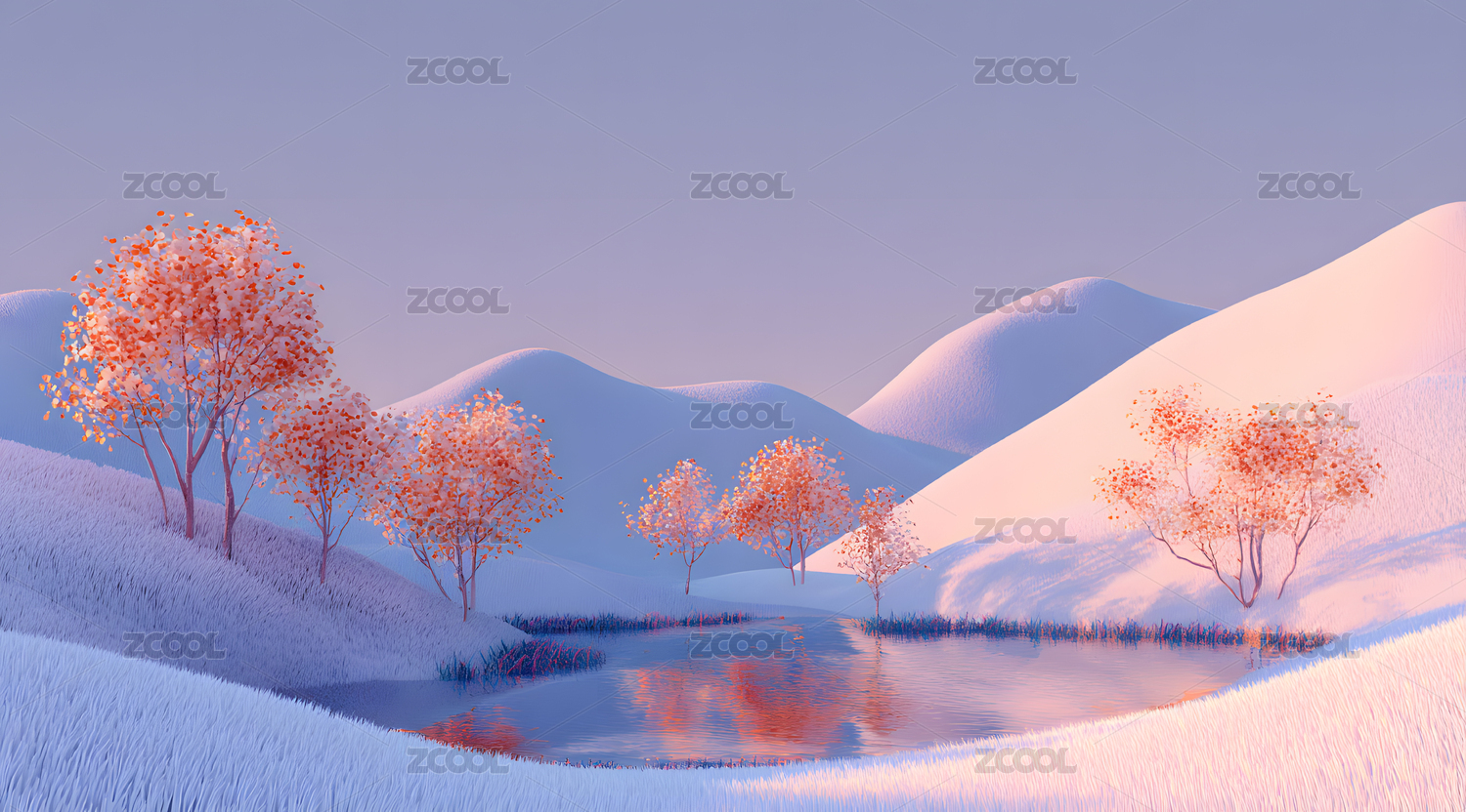 冬日湖畔的梦幻景色