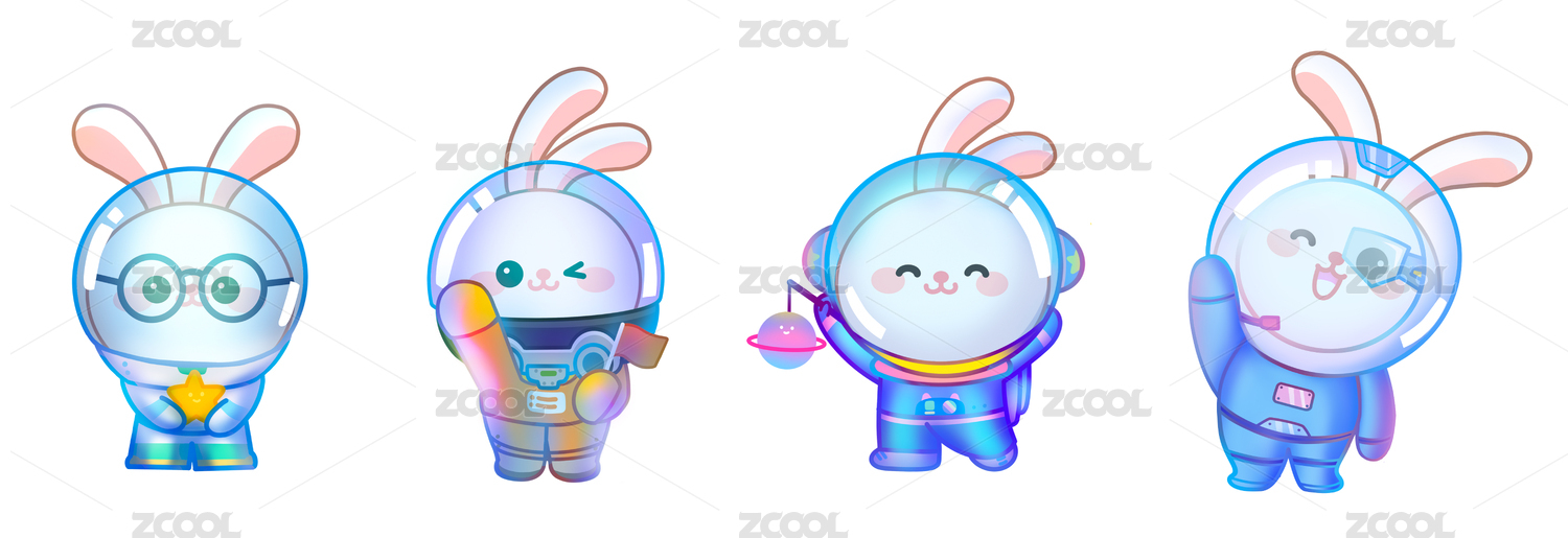 中秋节宇航员卡通兔子戴眼镜提灯笼拿旗子
