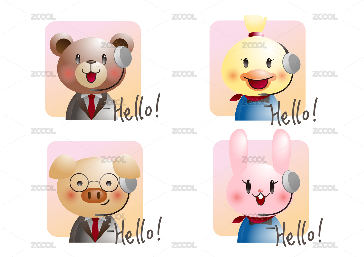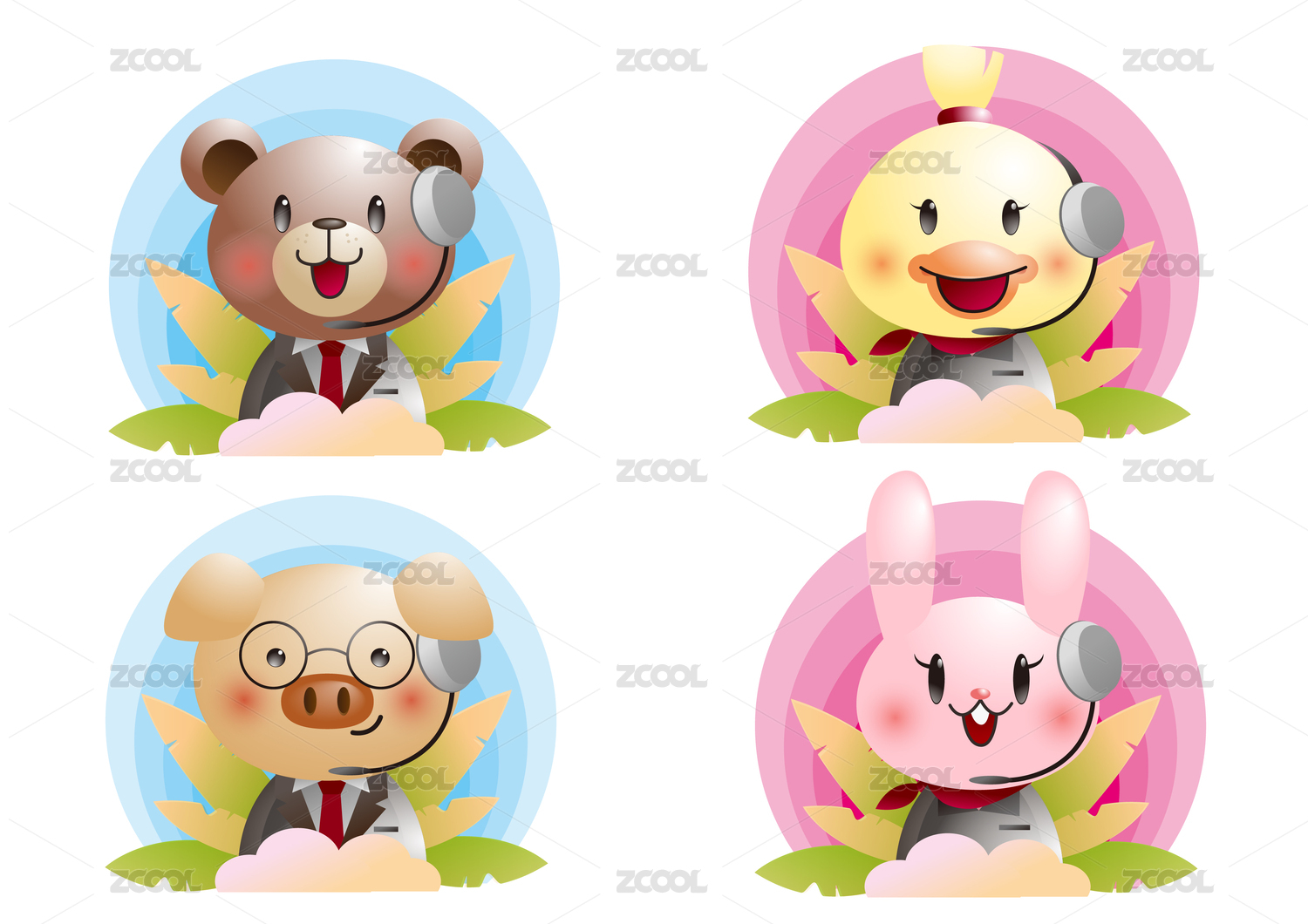 矢量,可爱,动物,头像,表情,微笑,客服,打电话,服务,热线