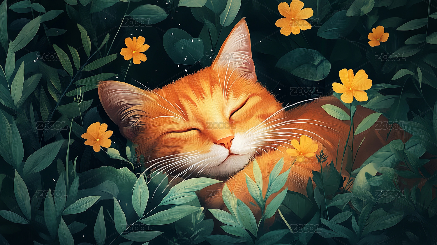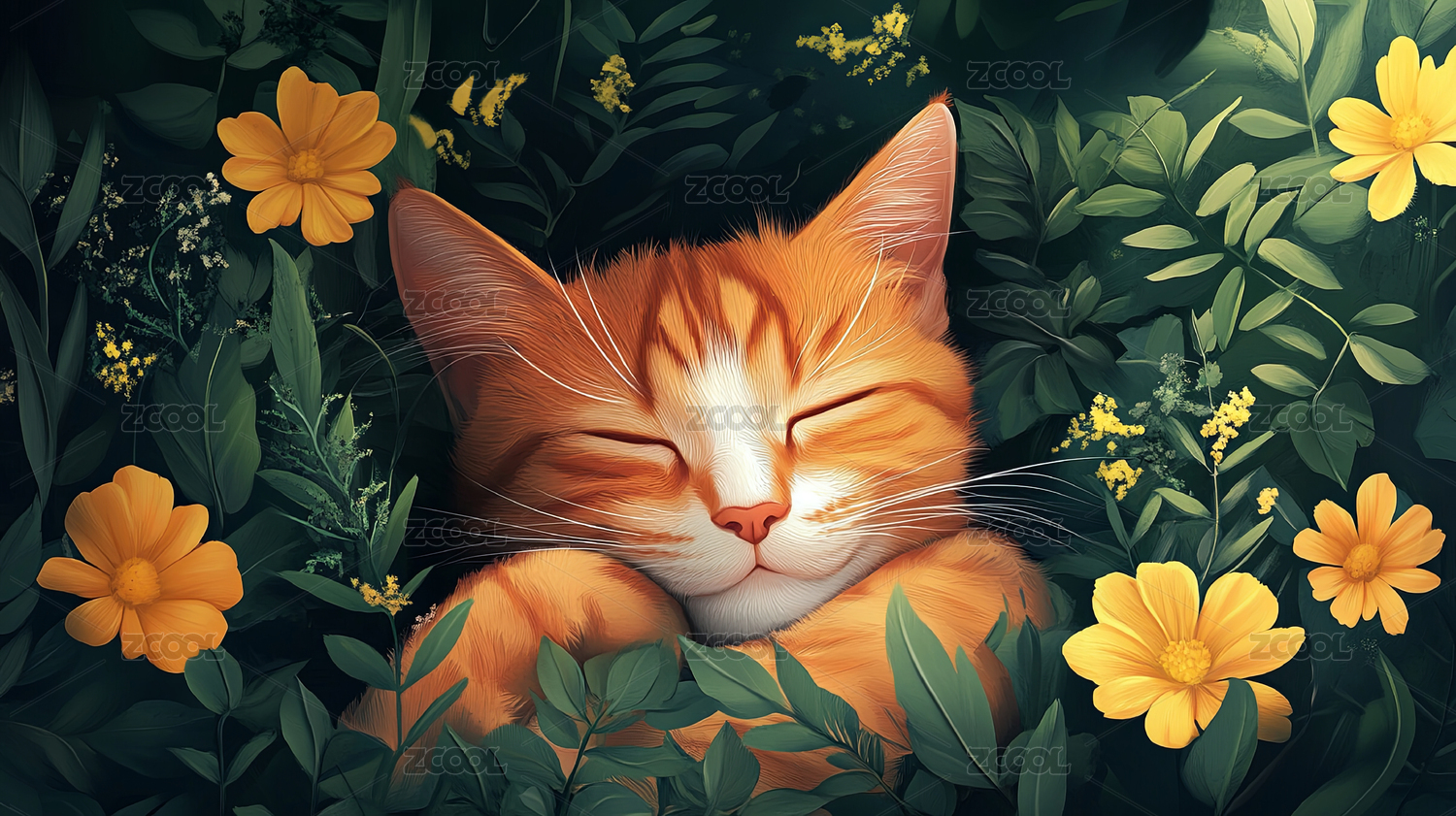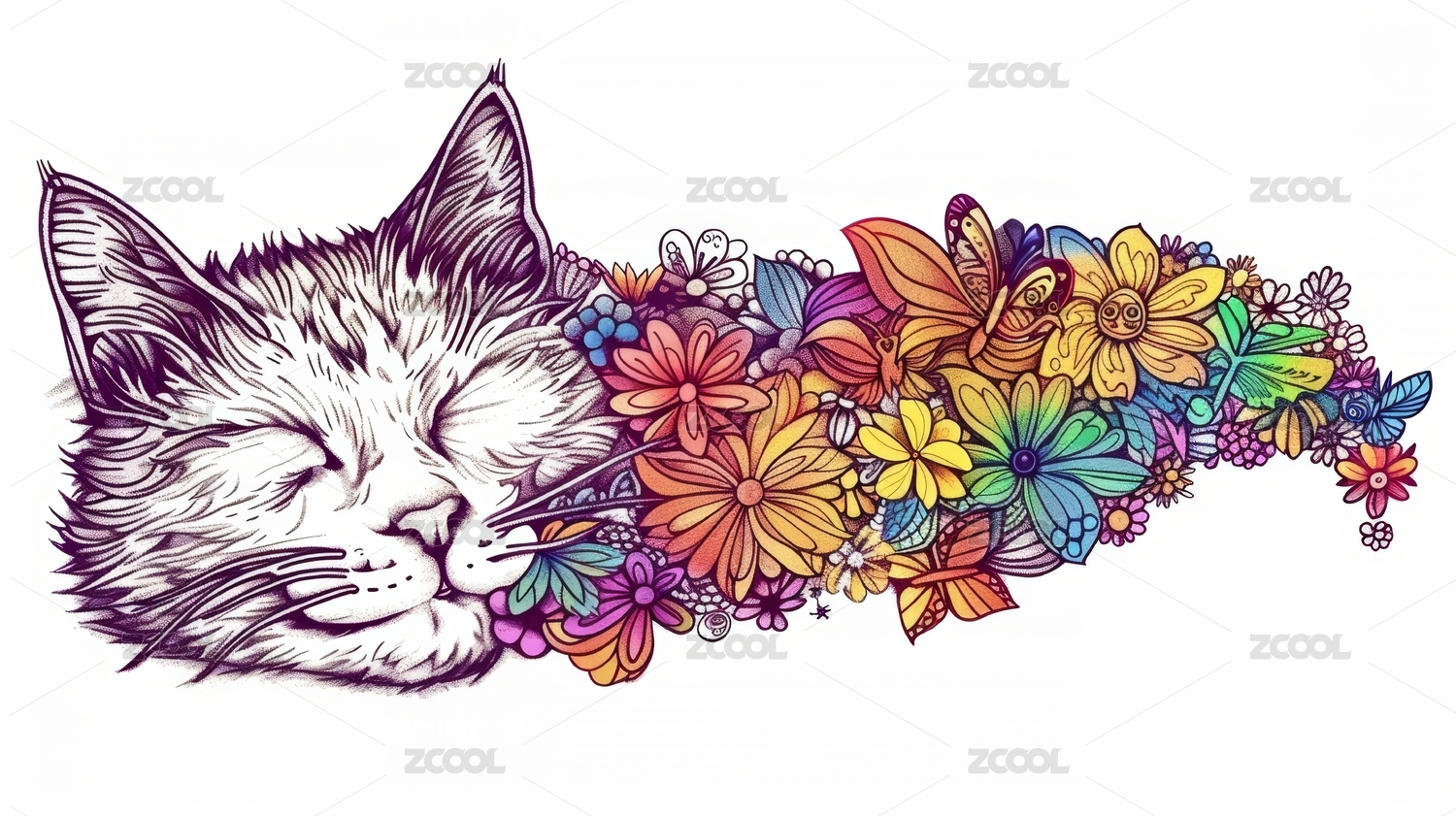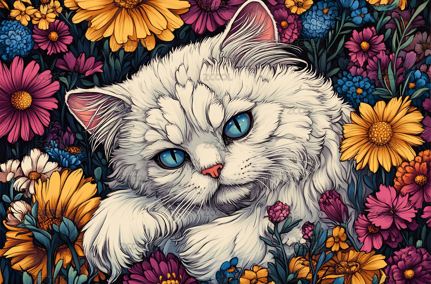 静物,艺术,生活,猫咪,书籍,花朵,插画,水彩,动物,植物