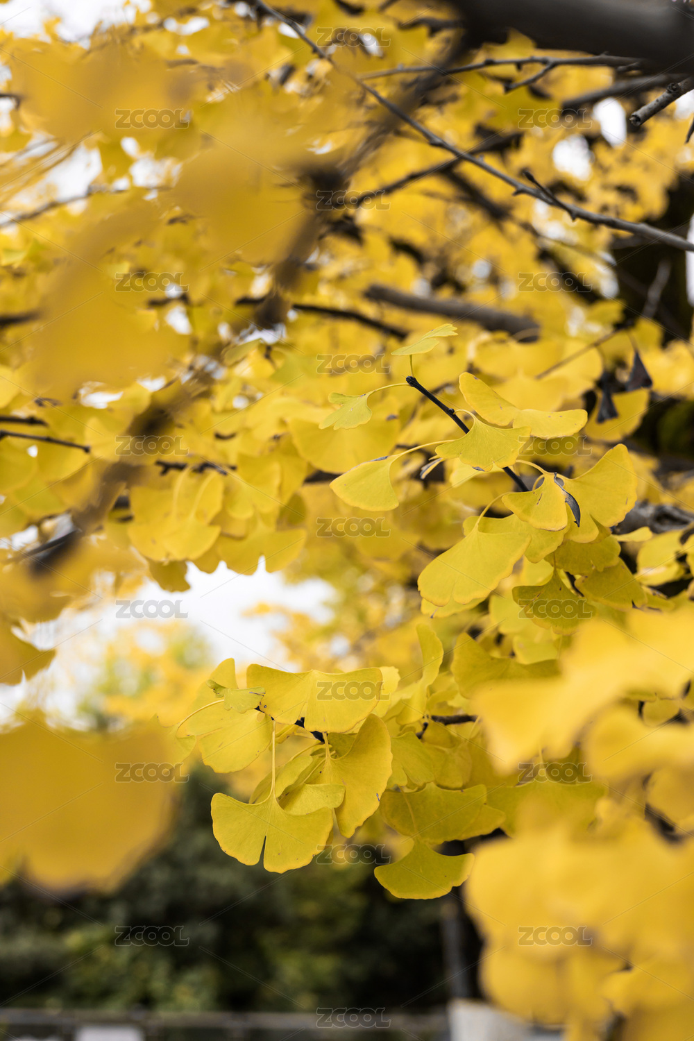 冬日枝头上一片片已经黄透金黄的银杏叶
