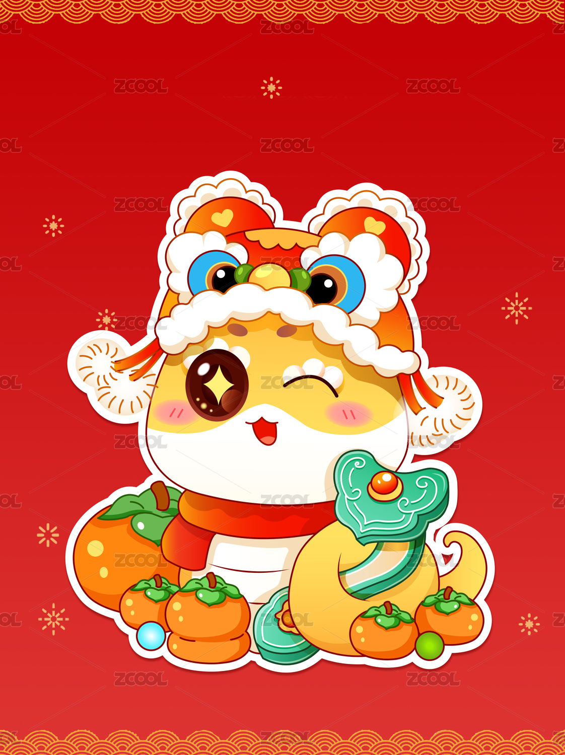 蛇年春节新年可爱卡通形象国潮矢量插画海报