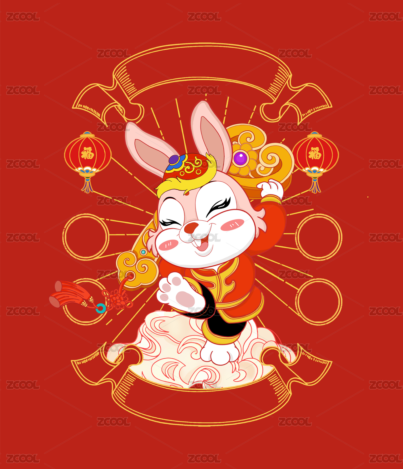 国潮门神兔子