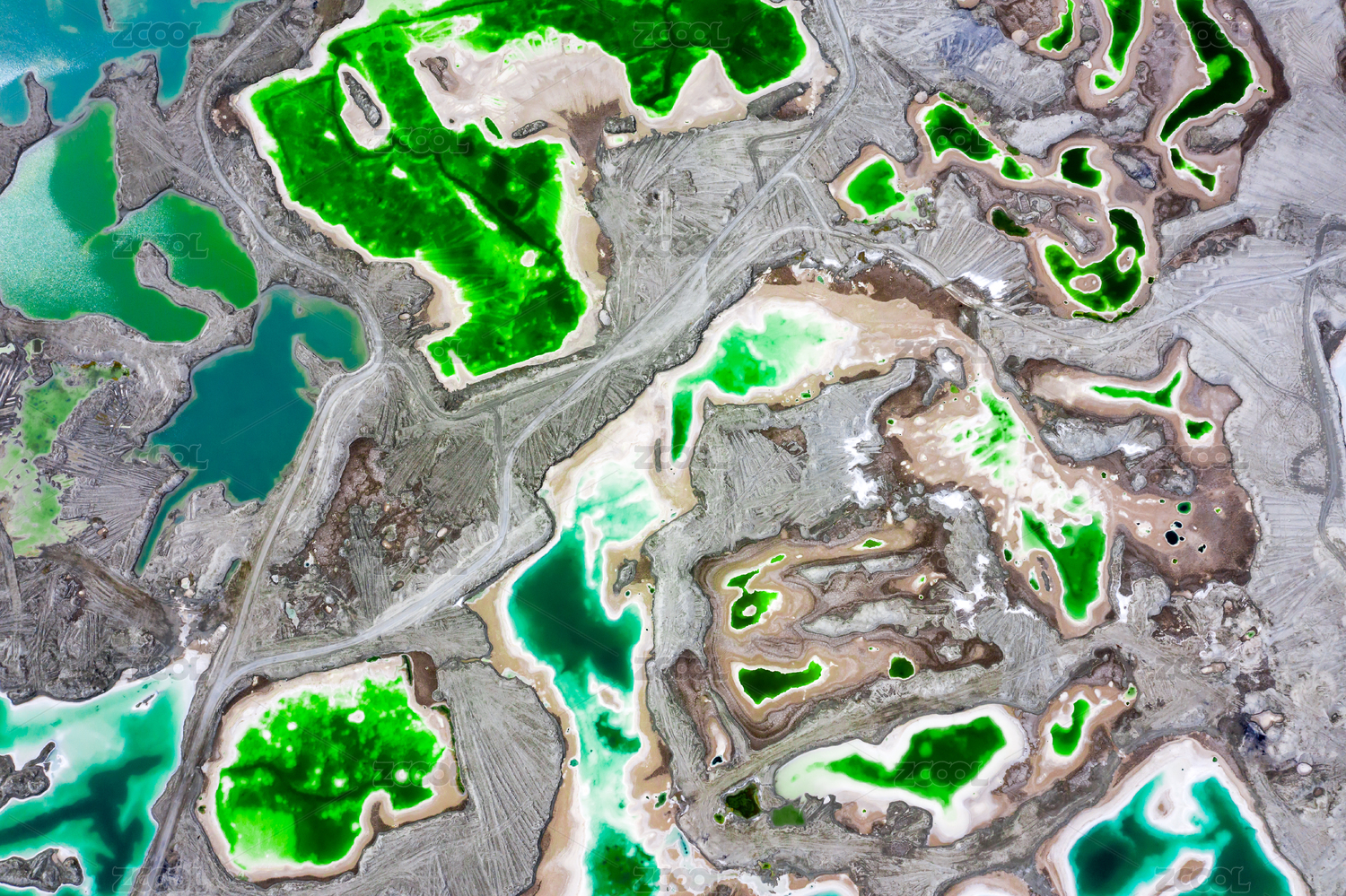 中国青海大柴旦翡翠湖景区盐湖自然风光航拍