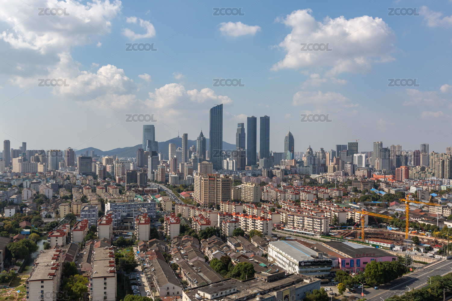 江苏无锡市城市地标建筑市中心蓝天白云风光