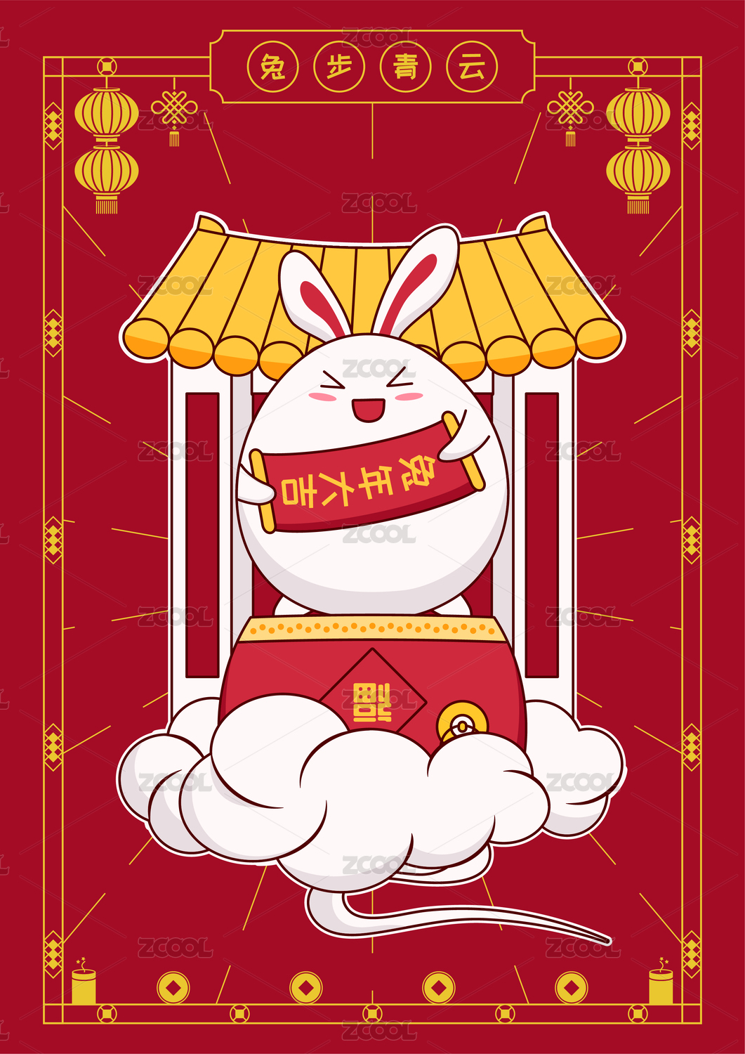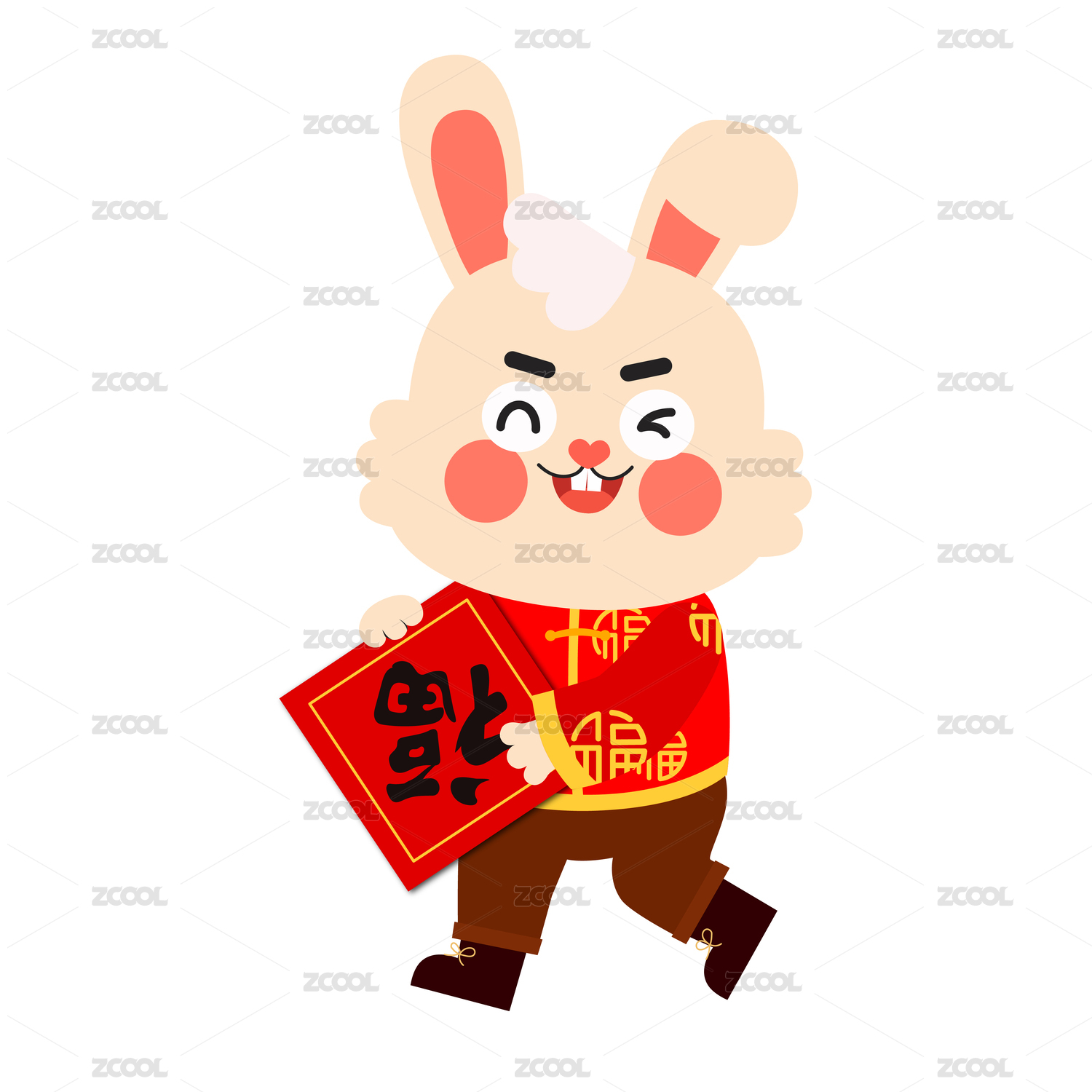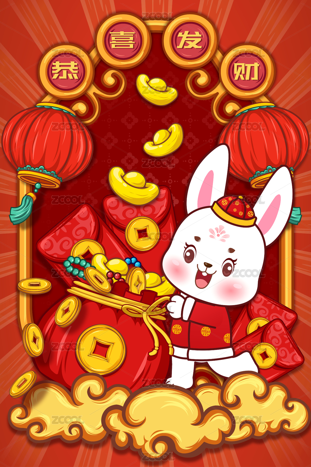 兔年,2023,条幅,红色,横幅,兔子,白兔,艺术字,背景,插画