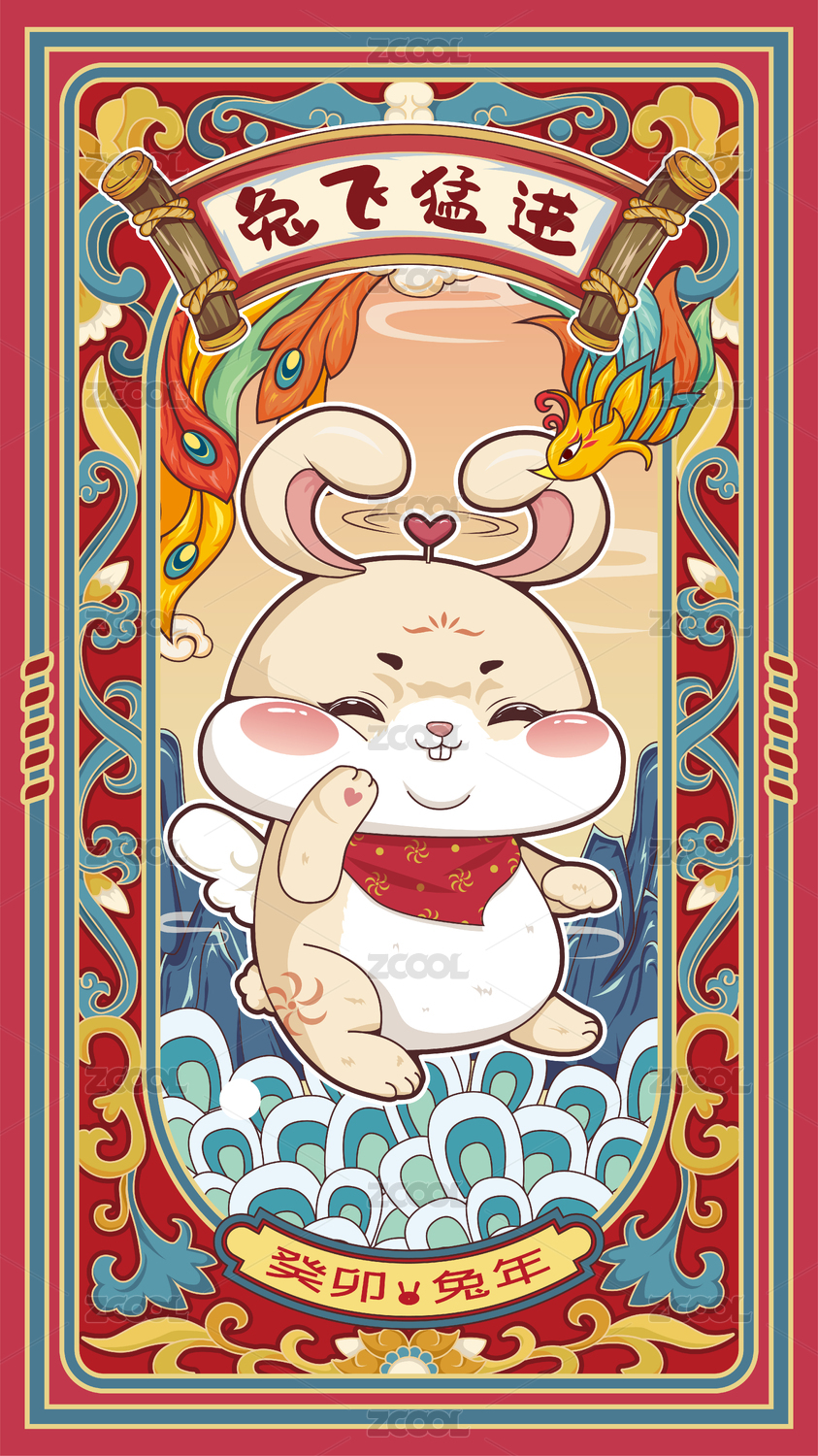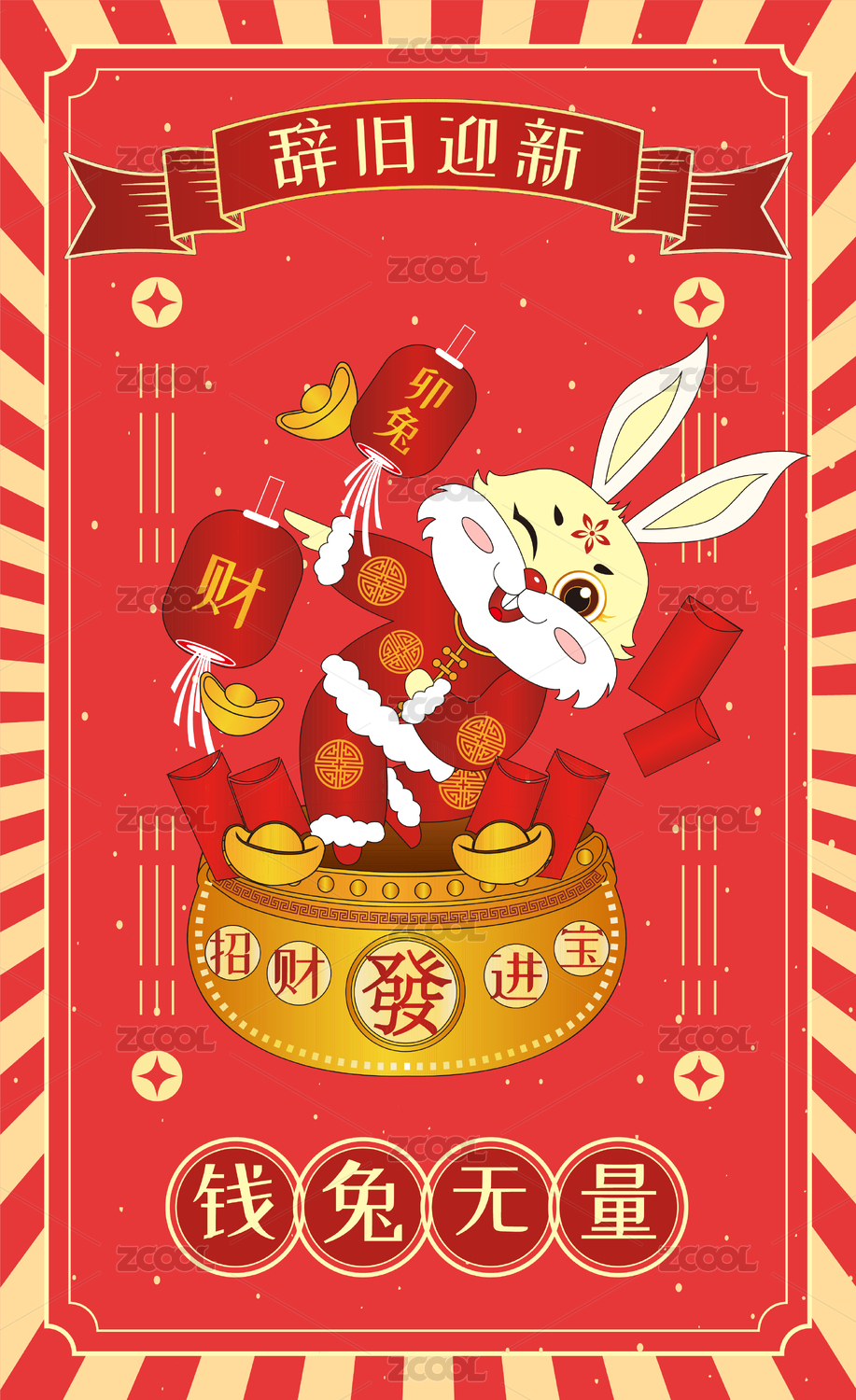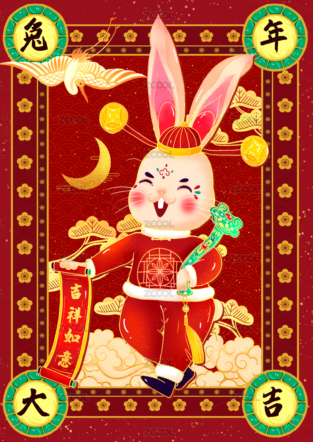 兔年,2023,条幅,红色,横幅,兔子,白兔,艺术字,背景,插画