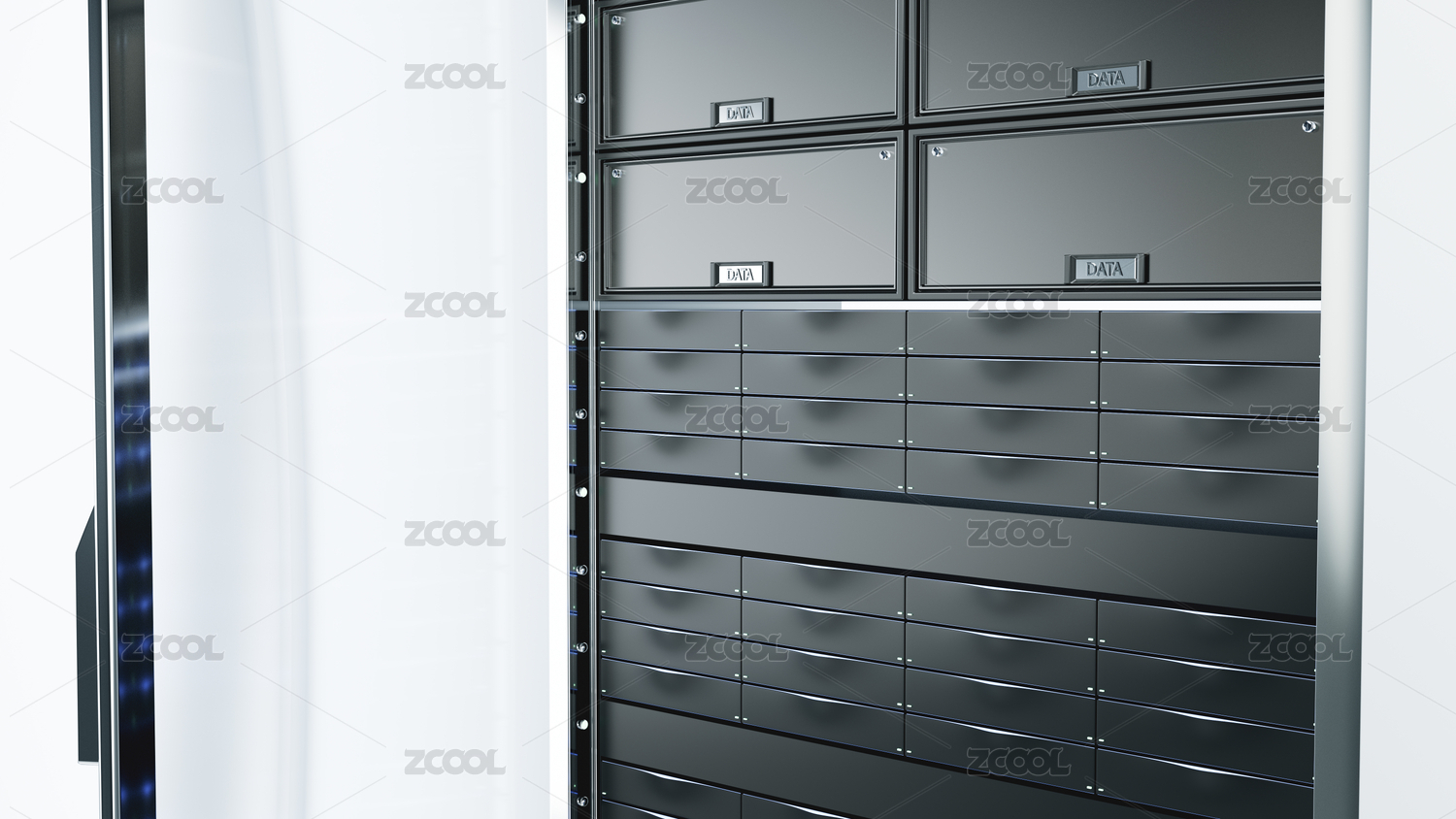 三维渲染的现代化高科技的服务器机房,强大的数据库和运算存储能力。