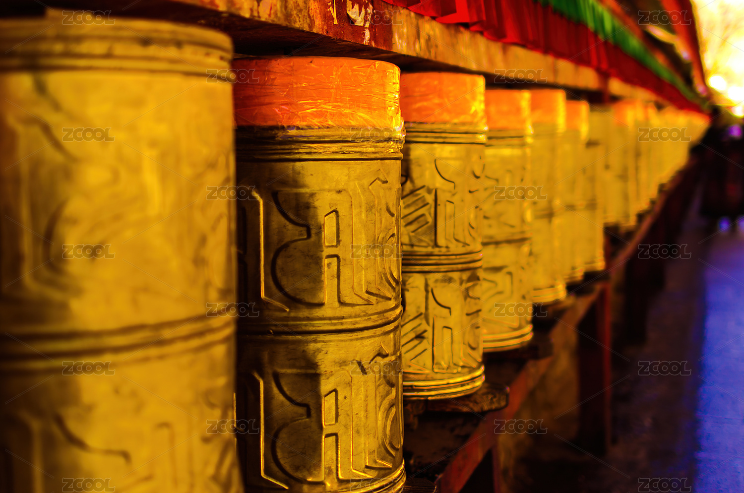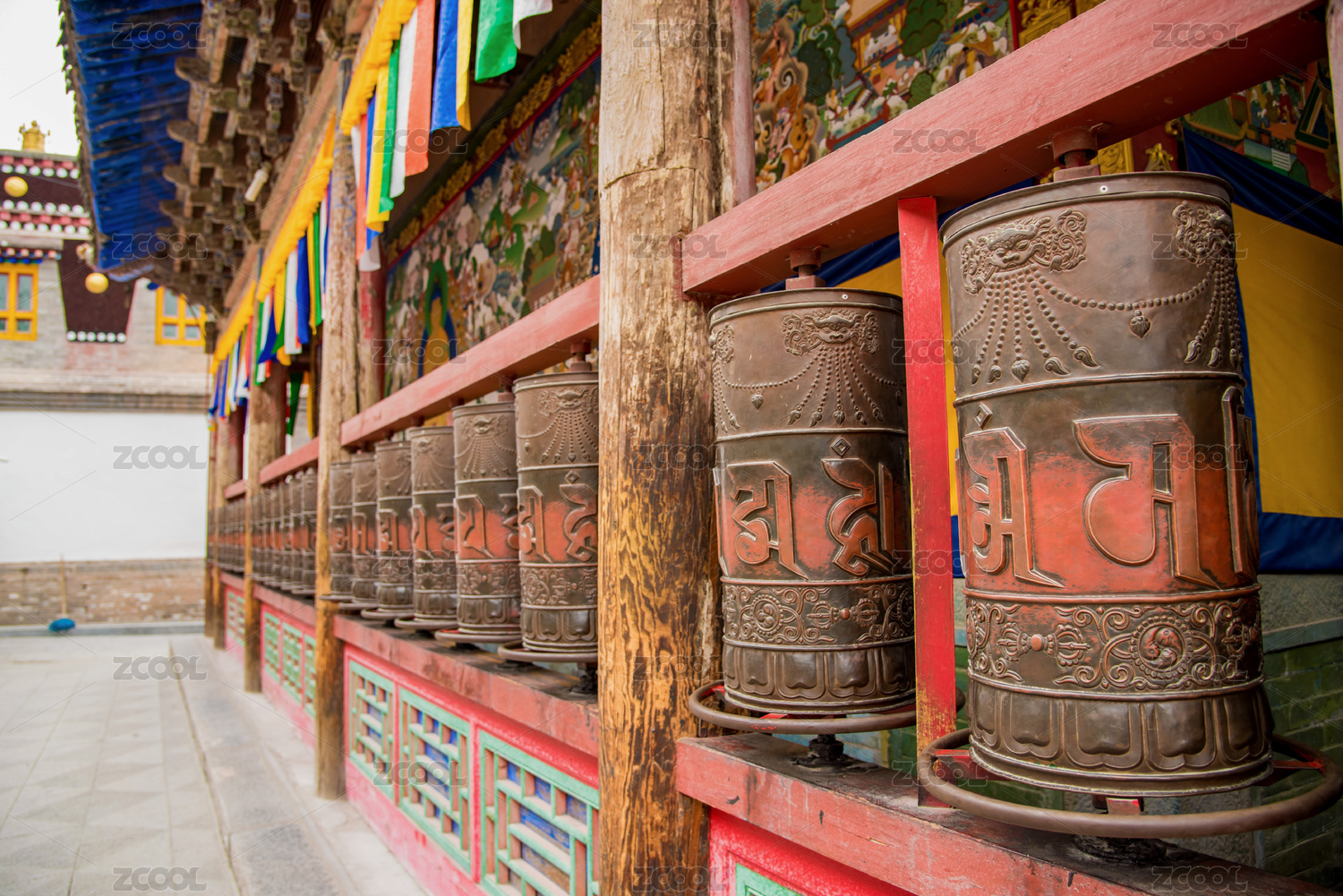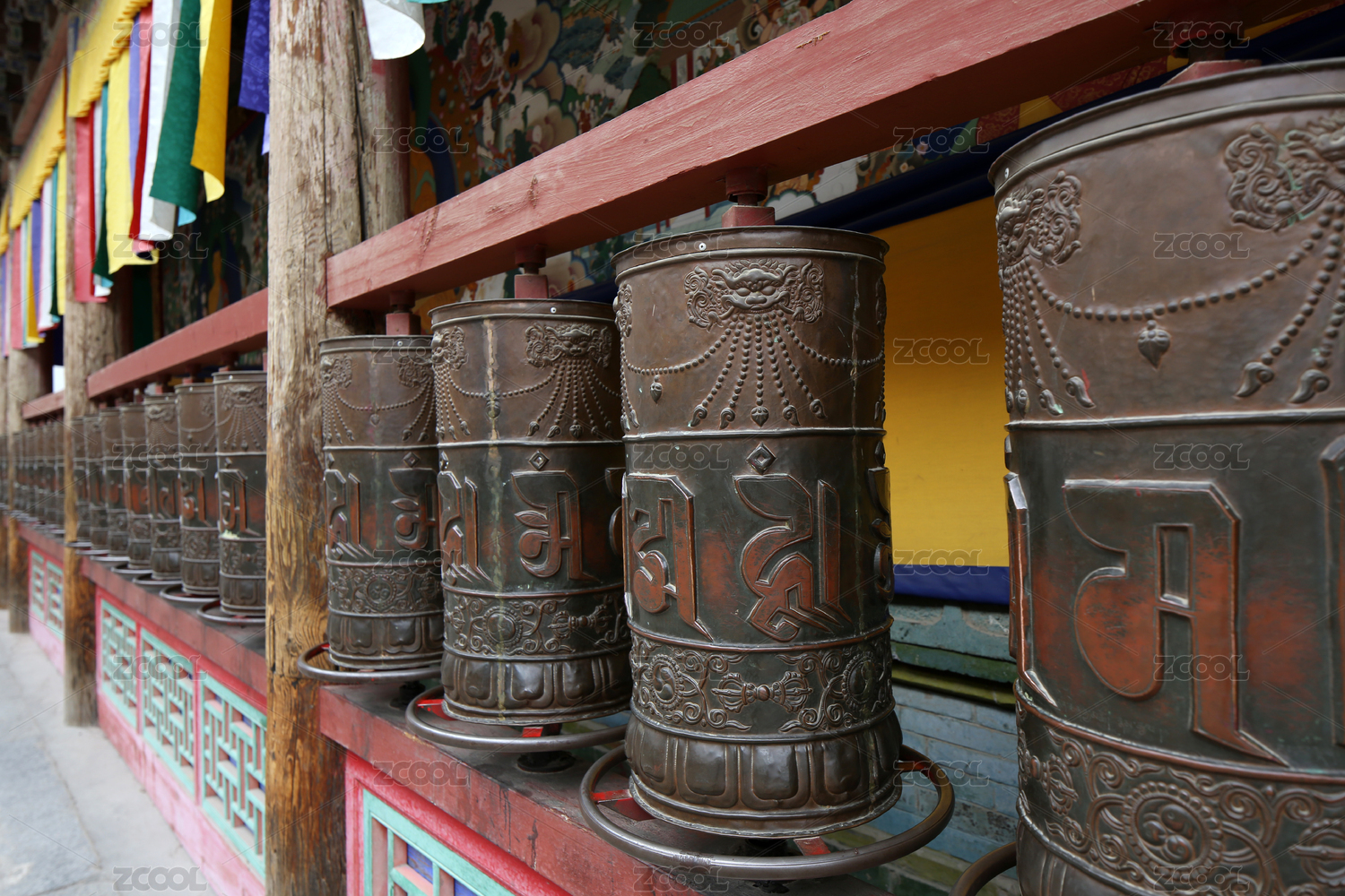 寺院里的转经筒特写镜头
