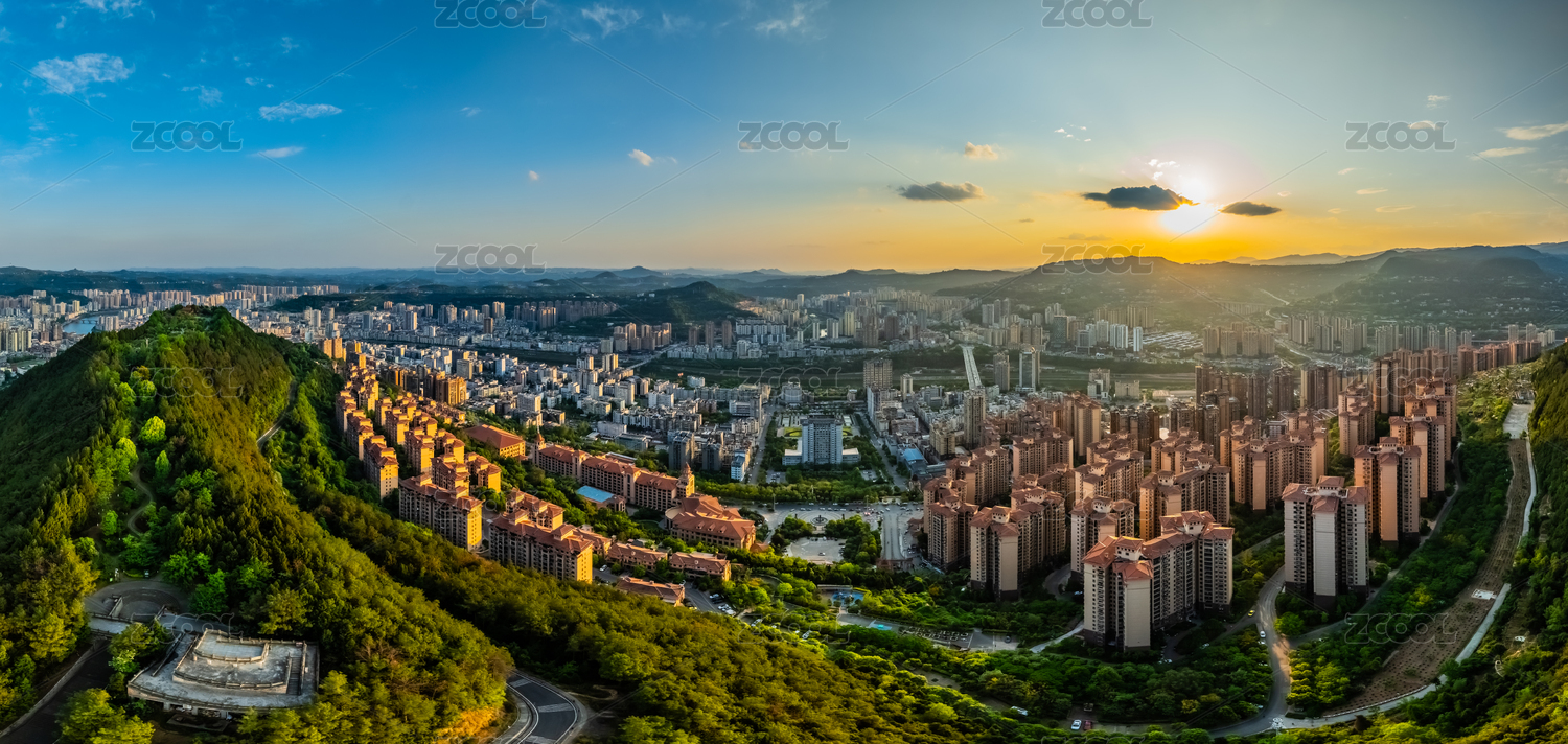 中国四川省巴中市黄昏望王山城区高楼建筑