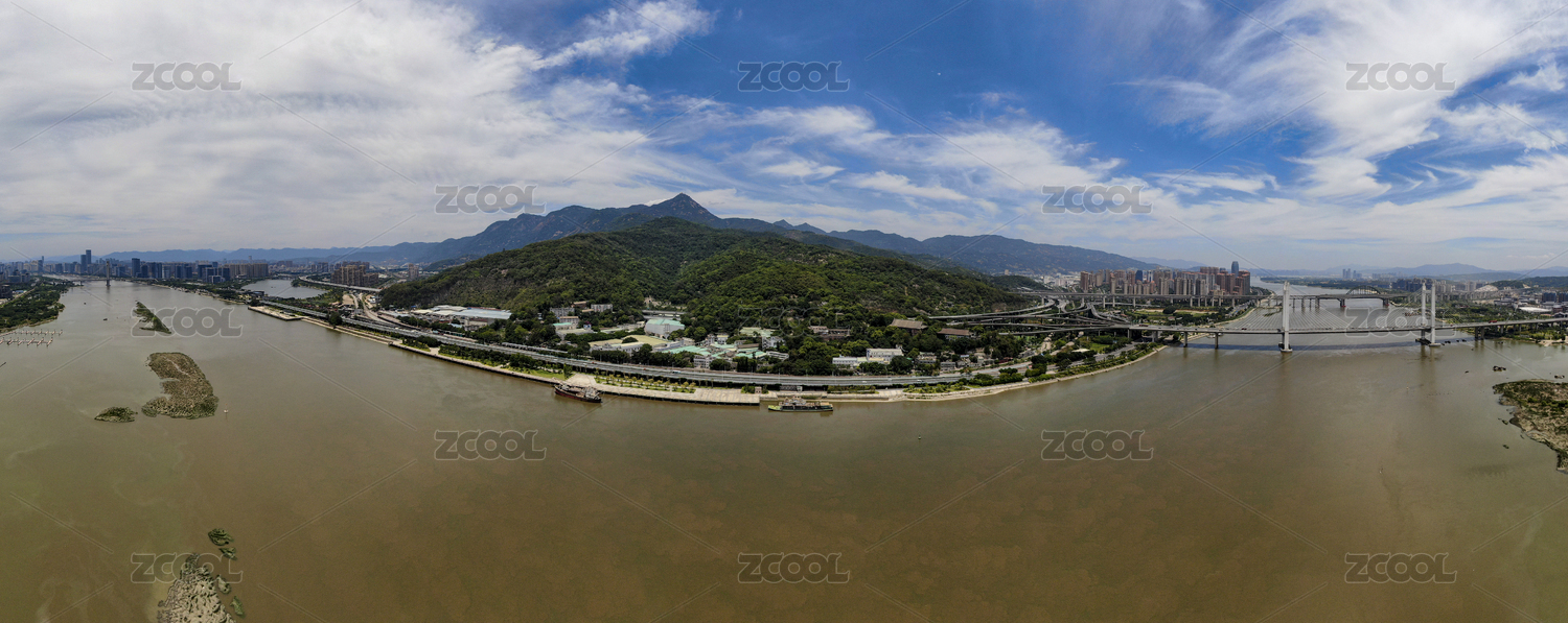 浙江省杭州富阳富春大桥富春江晨曦航拍