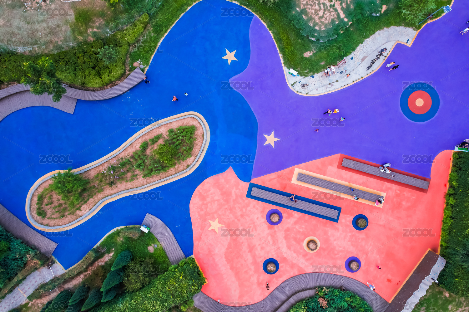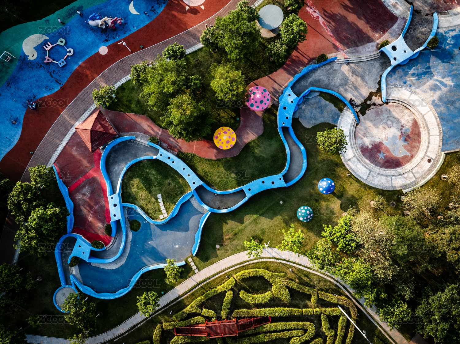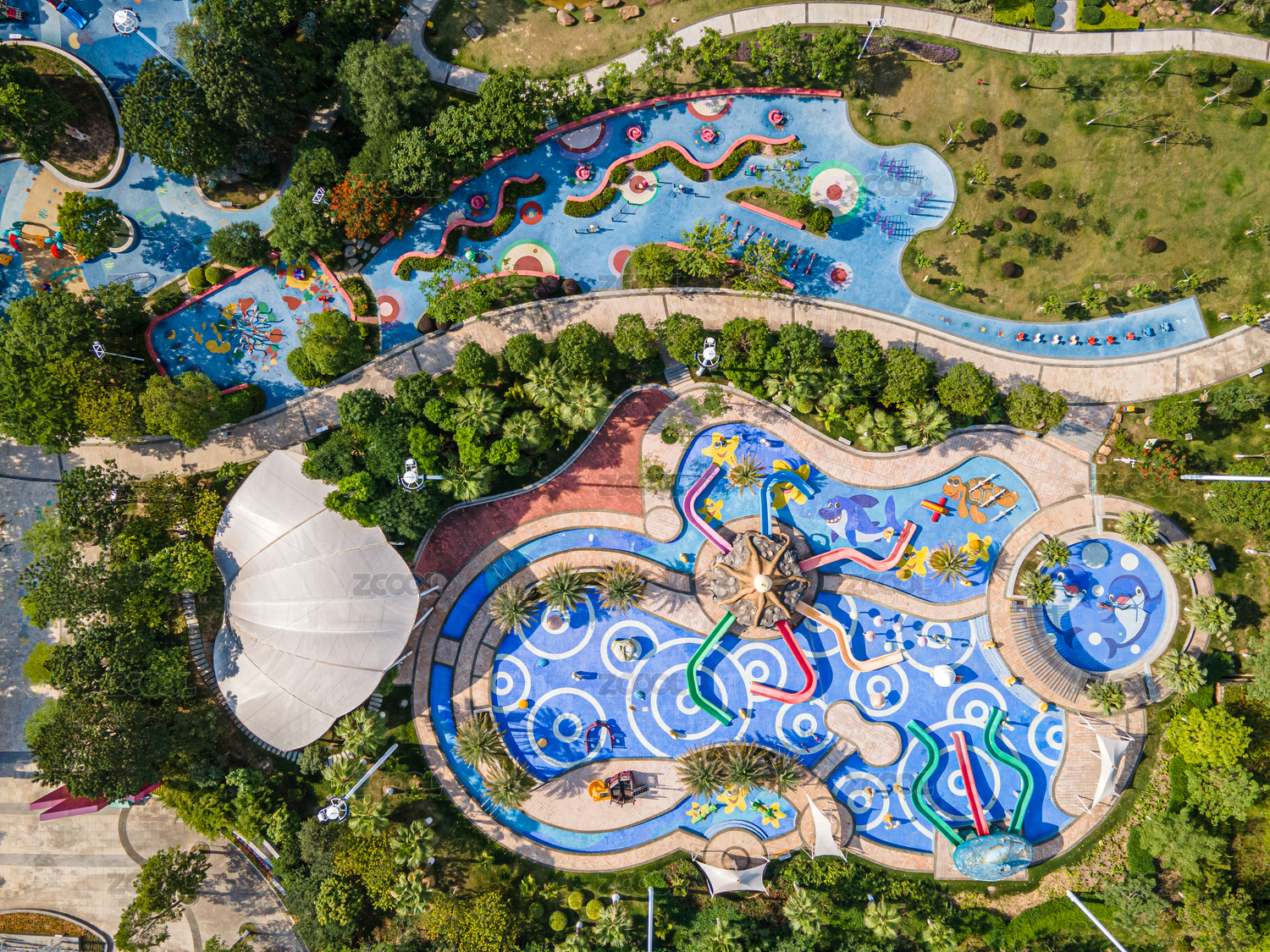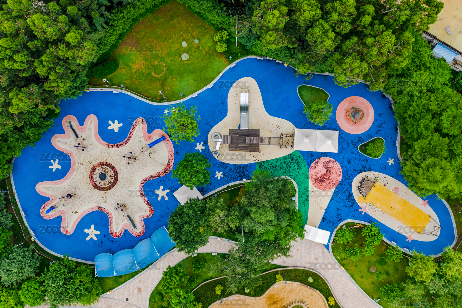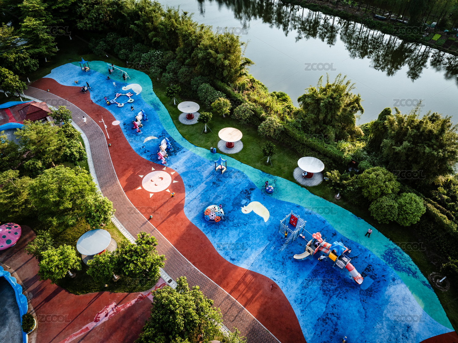 航拍视角下的浙江省杭州市杭州丰收湖公园