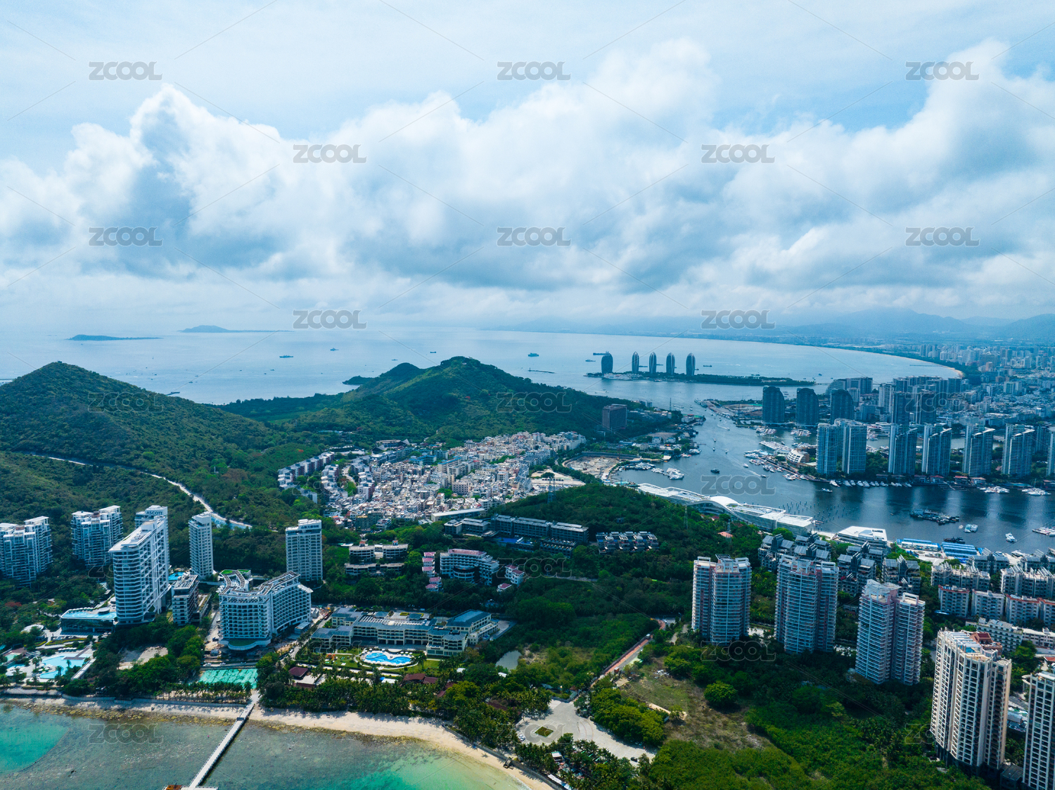 中国,海南,三亚,大东海,大海,城市,早晨,交通,航拍,建筑