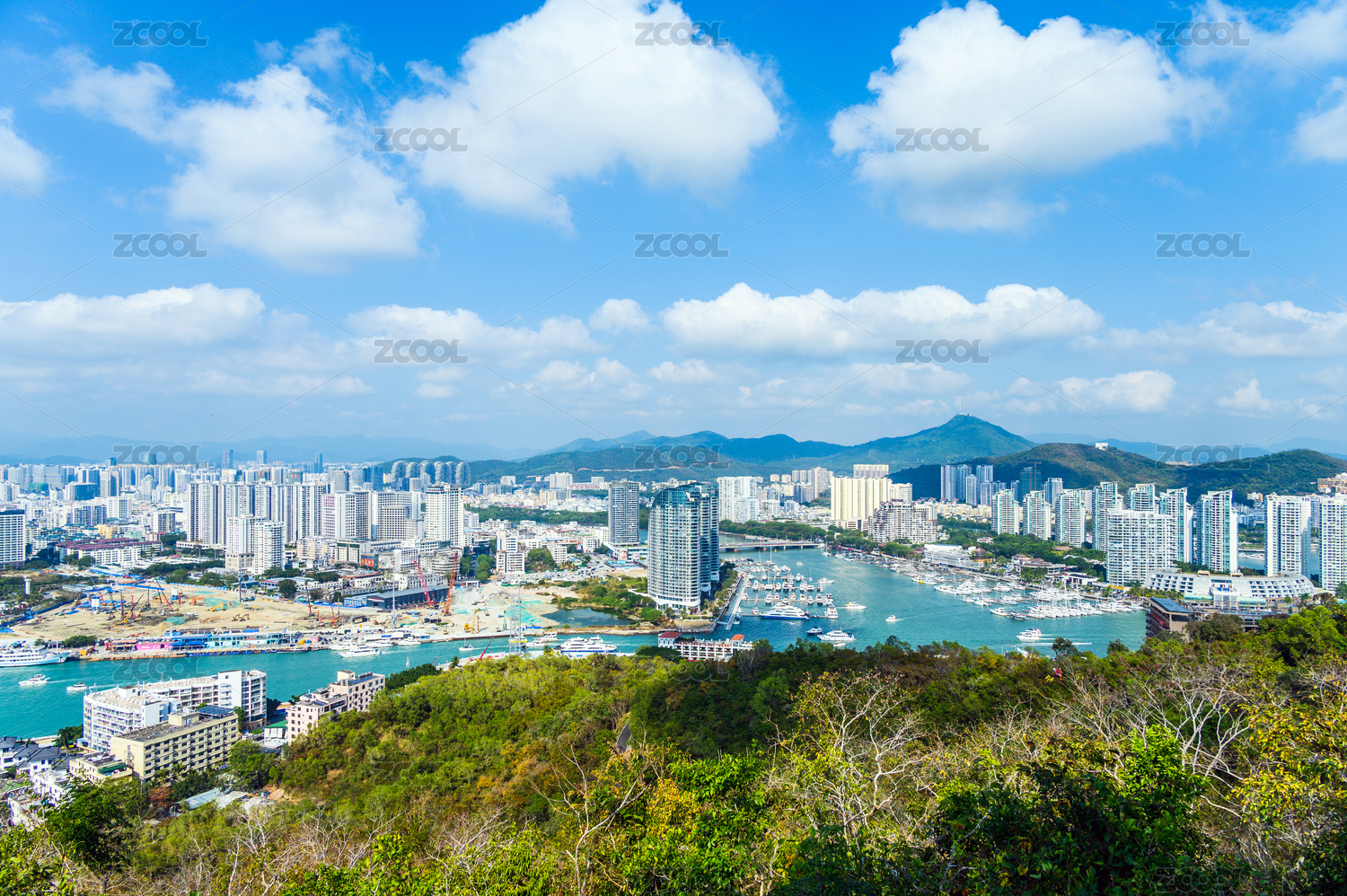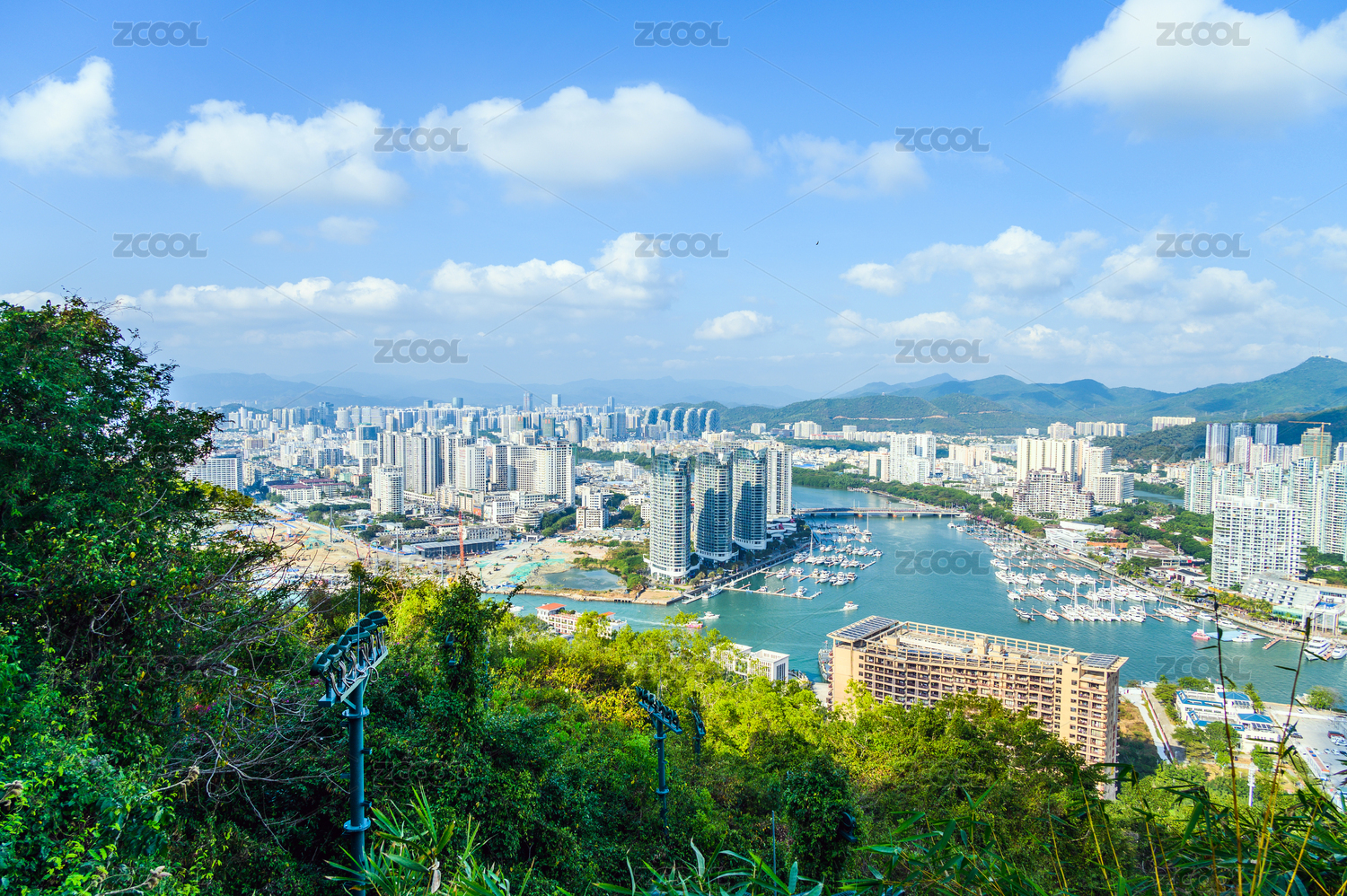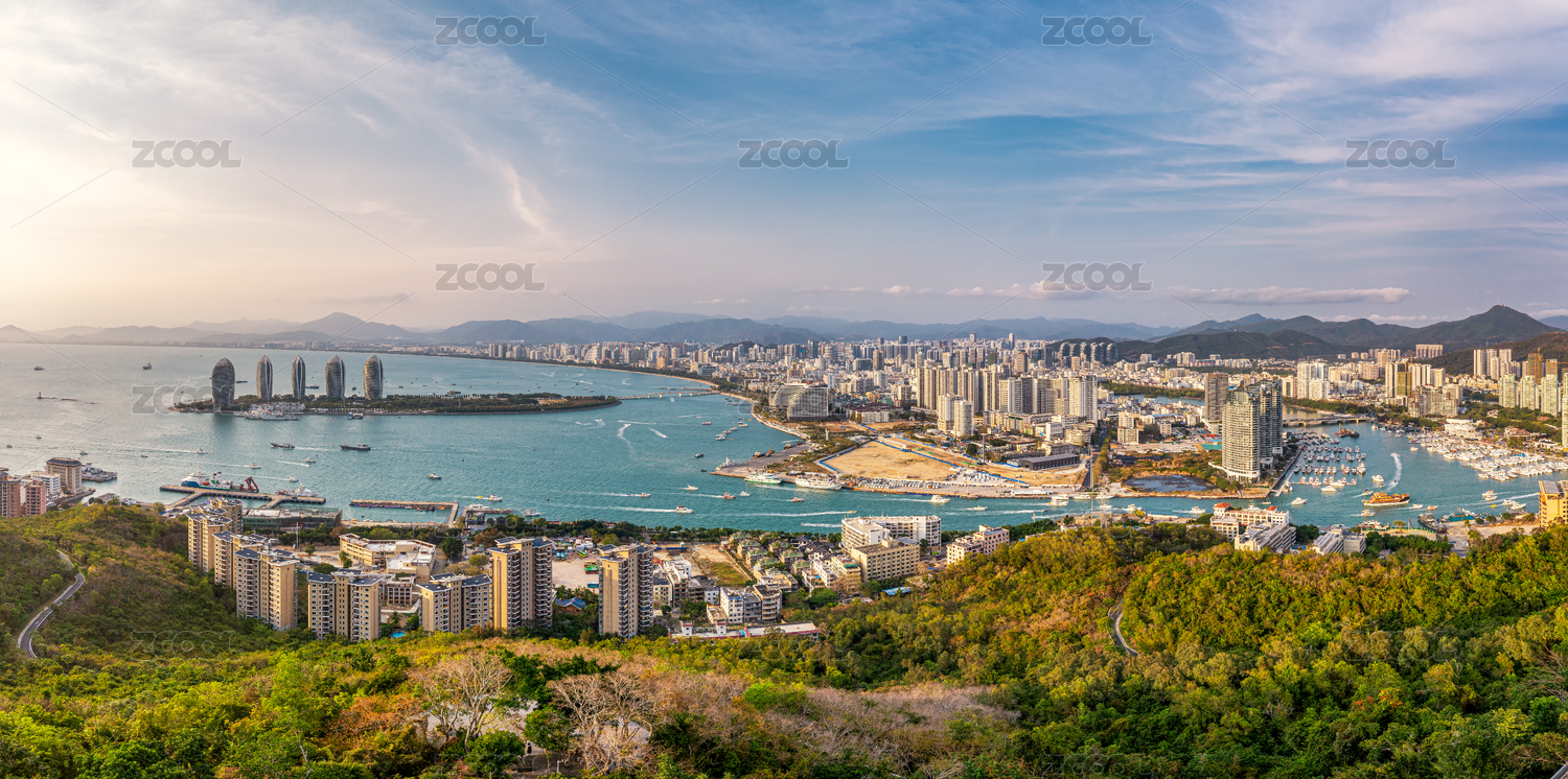 海南著名景点鹿回头山顶俯瞰海岸海湾城市