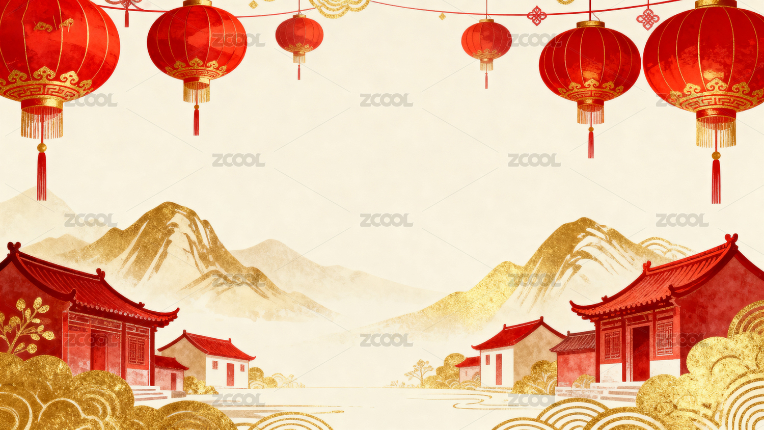 新年喜庆灯笼祥云烟花爆竹大气红色海报背景